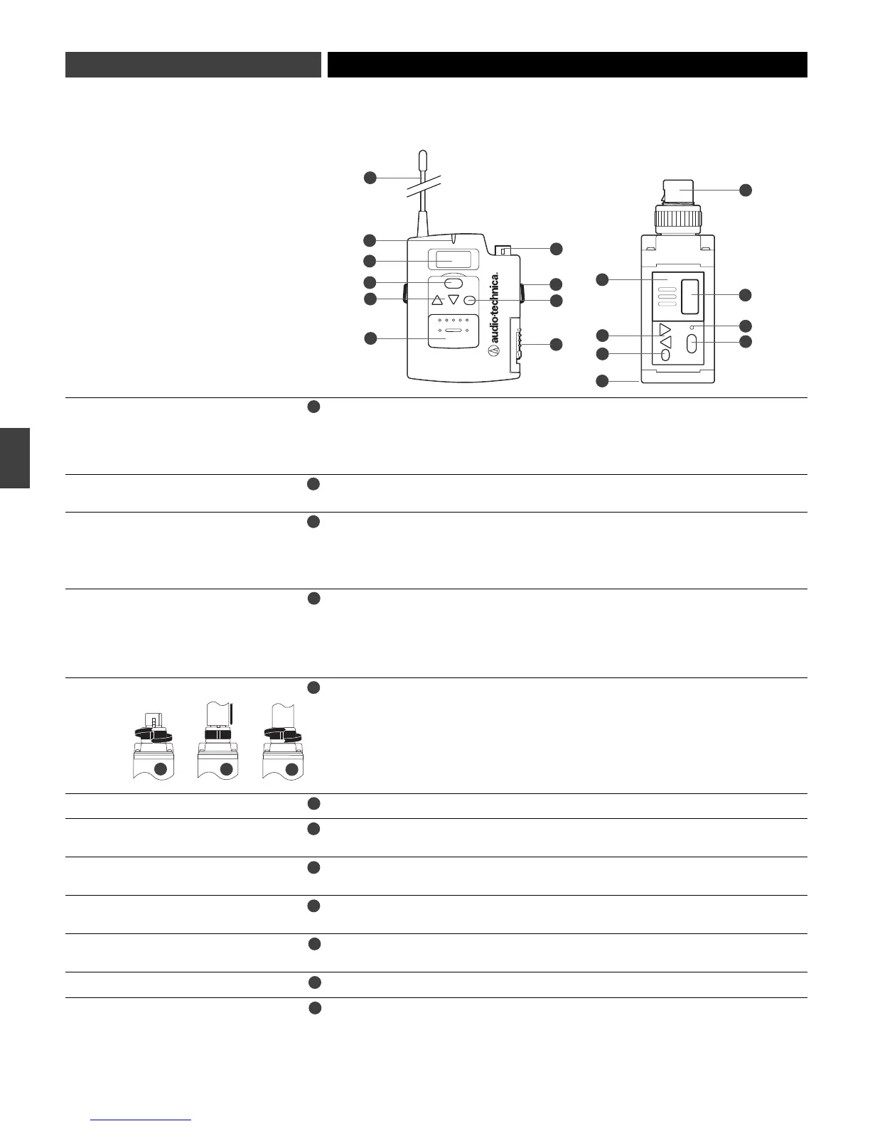The ATW-T1802 plug-on transmitter has a 3-pin XLRF-type input connector with a locking collar.