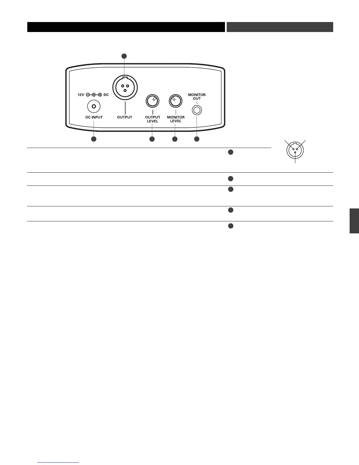 Sortie audio symétrique : sur connecteur mâle de type TA3M. Assignation des contacts : point 1 =