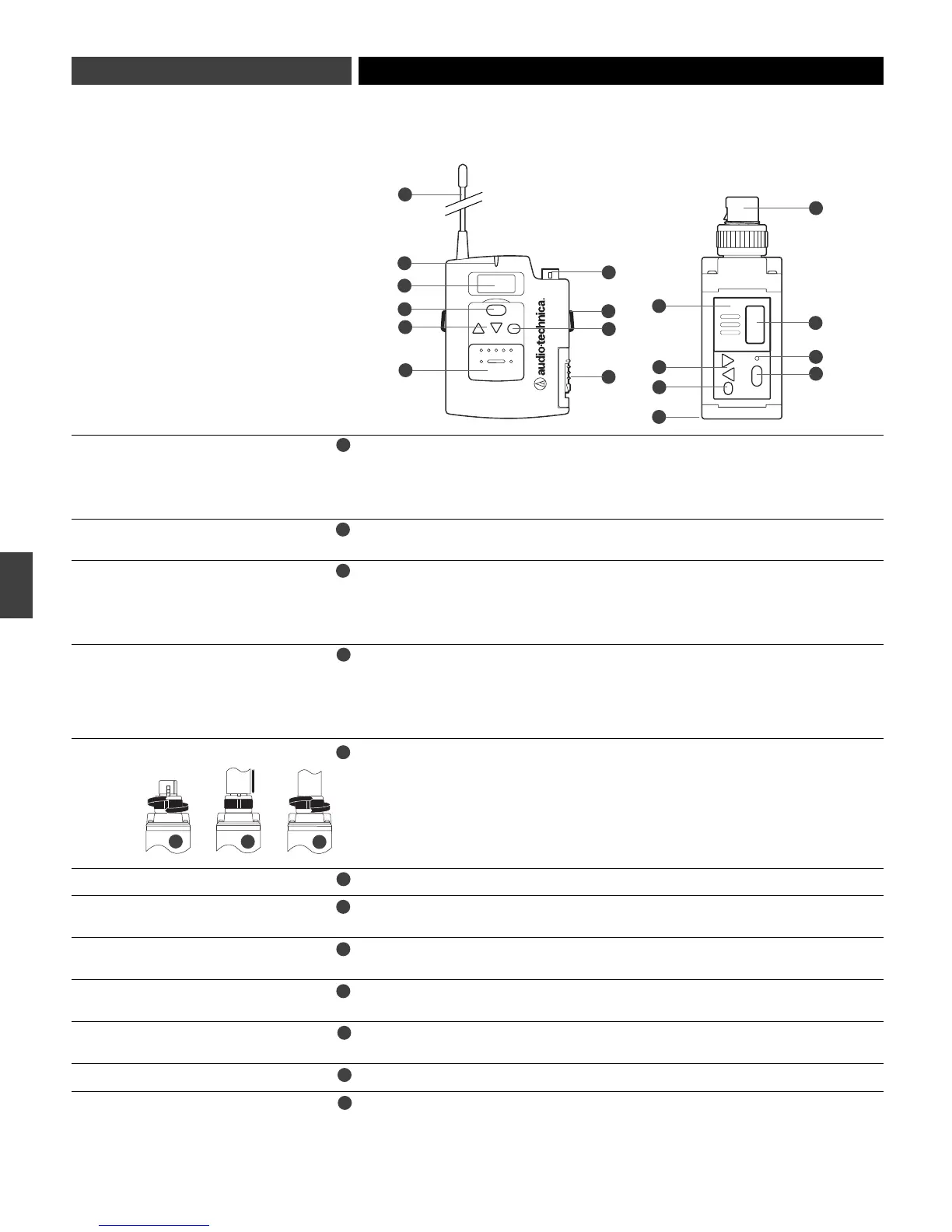 L’émetteur de poche ATW-T1801 UniPak™ possède une antenne souple, facilement remplaçable.
