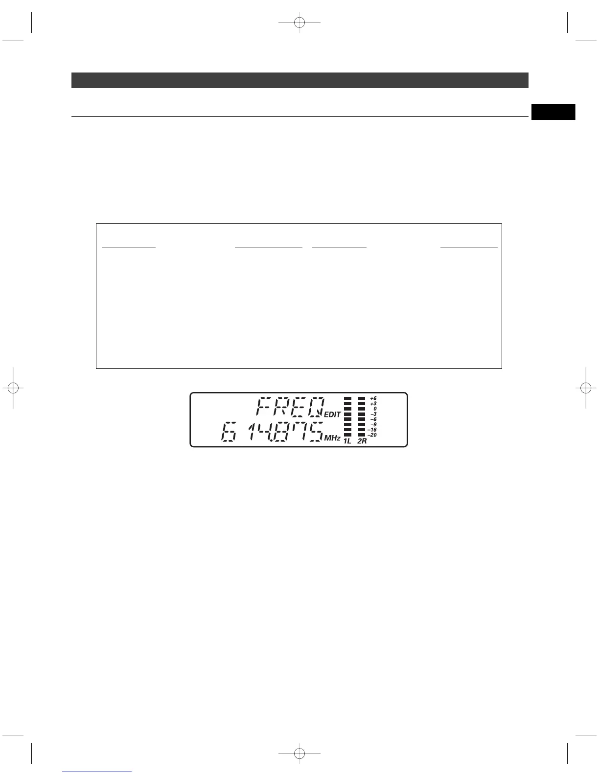 ▲▼ Frequency (Frecuencia) Más bajo de la banda Más de 1250 frecuencias discretas Sí