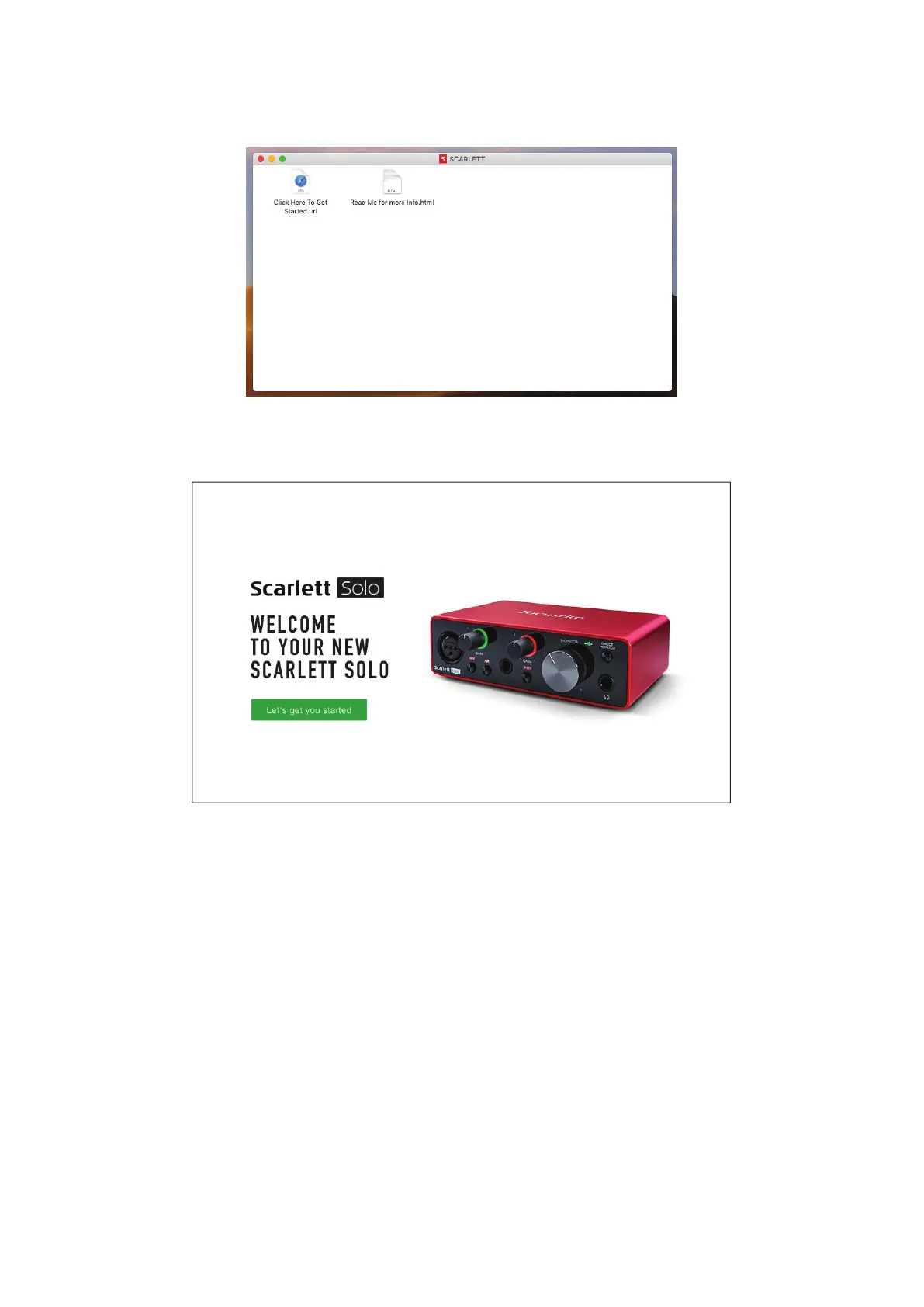 Double-click on the “Click Here to Get Started.url” icon. This will redirect you to the Focusrite