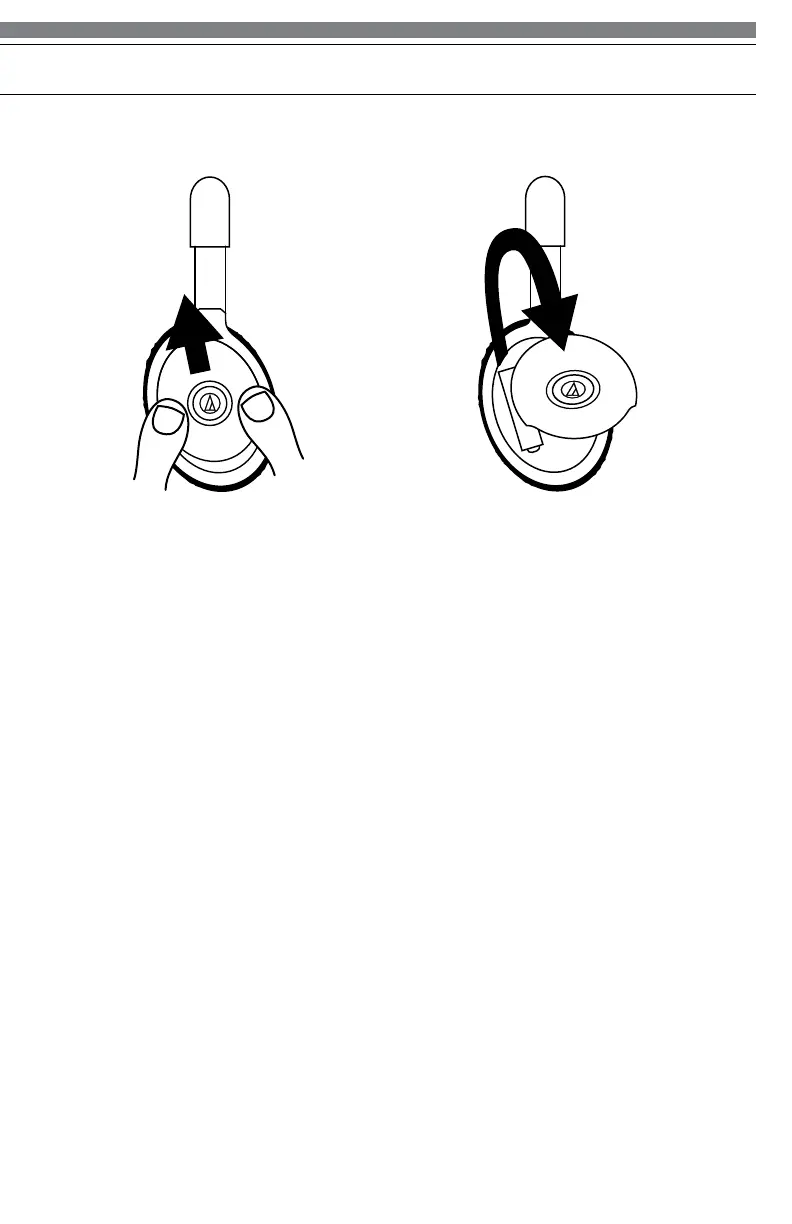 2. Presione hacia arriba con los dos pulgares en el audífono derecho.
