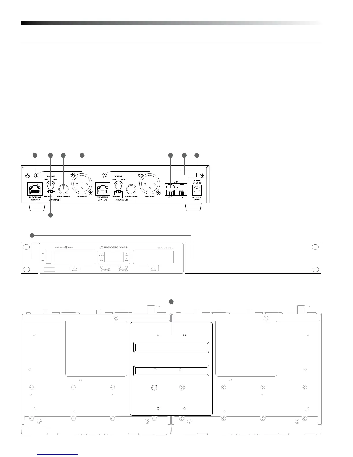 6. Receiver Chassis Link IN/OUT Connector: Use included RJ12 cable