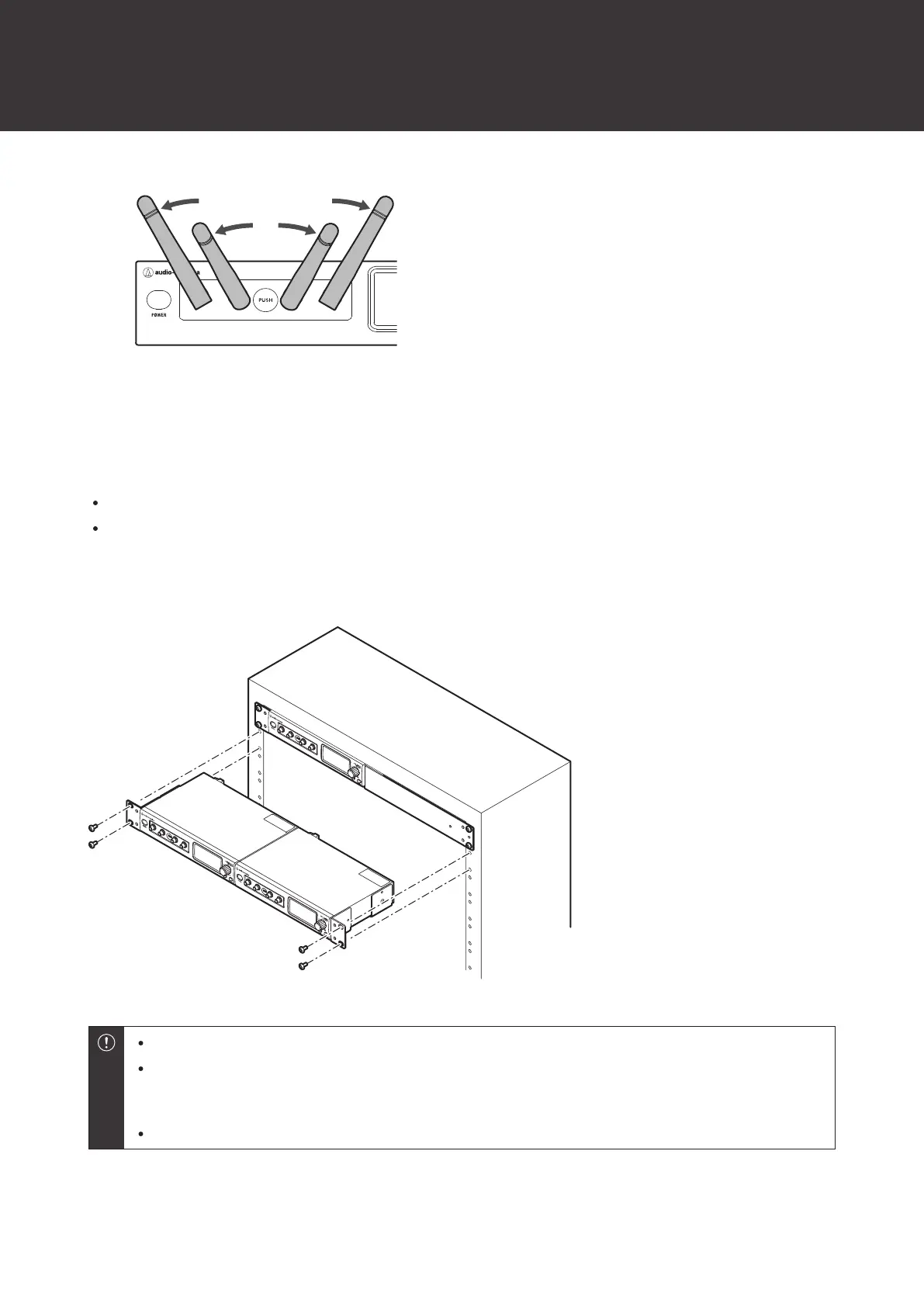 Use the included rack-mount adapters and fixing screws to mount the receiver on a commercially available rack.