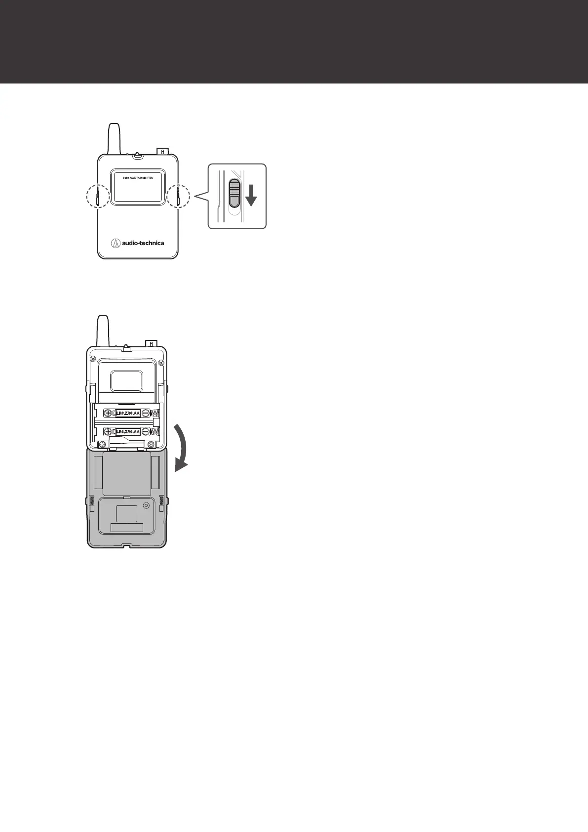 Open the battery cover while holding the latches down.