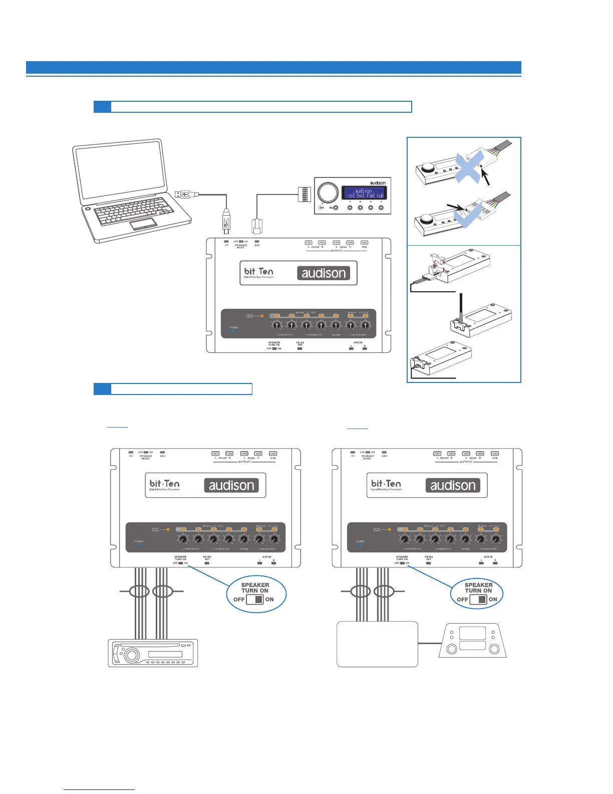 * To disable the Speaker Turn on function on the Front Left channel, move the indicated switch to the left to “OFF” position.