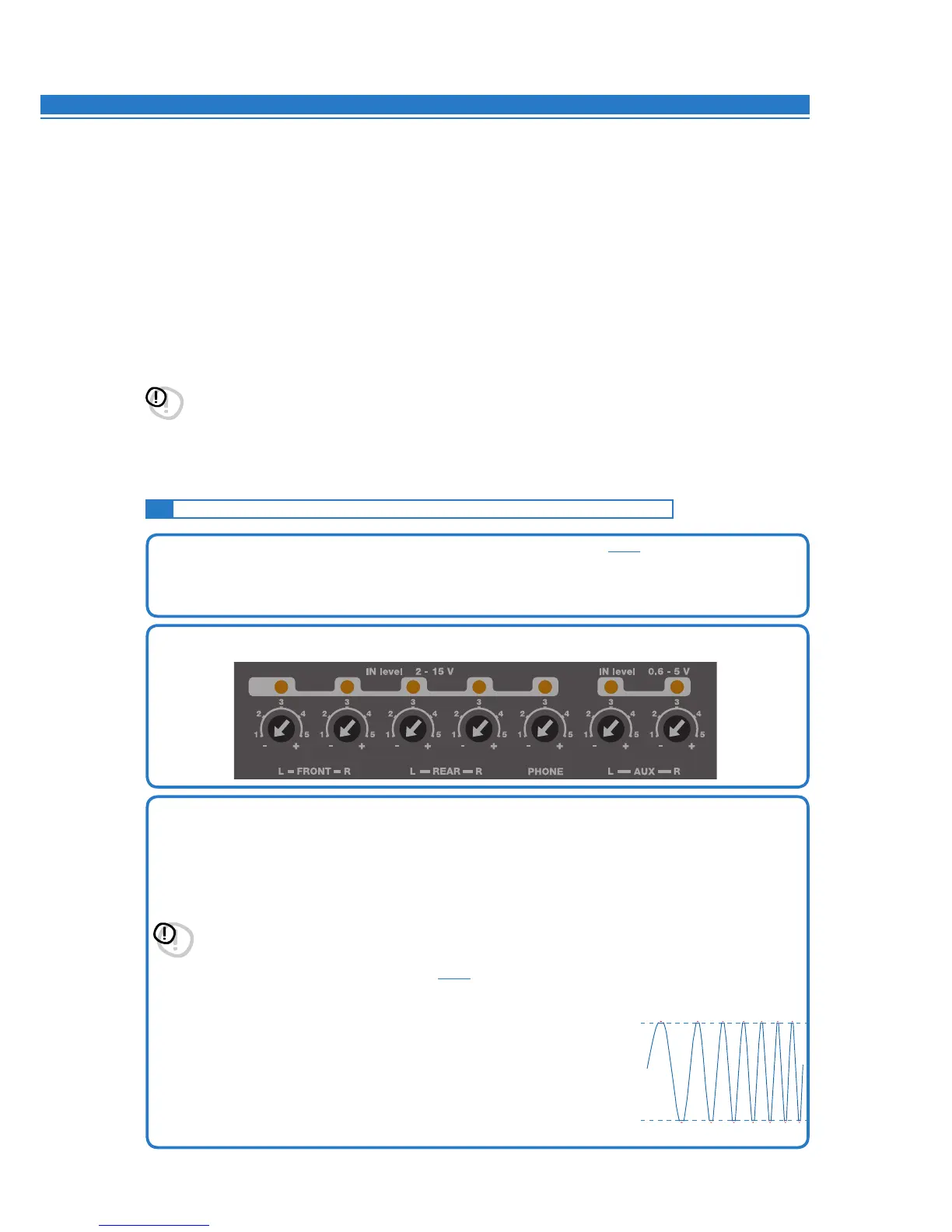 2. Make sure that the IN Level knobs for the inputs used (L / R Front, L / R Rear, Phone, Aux IN L-R) are set to