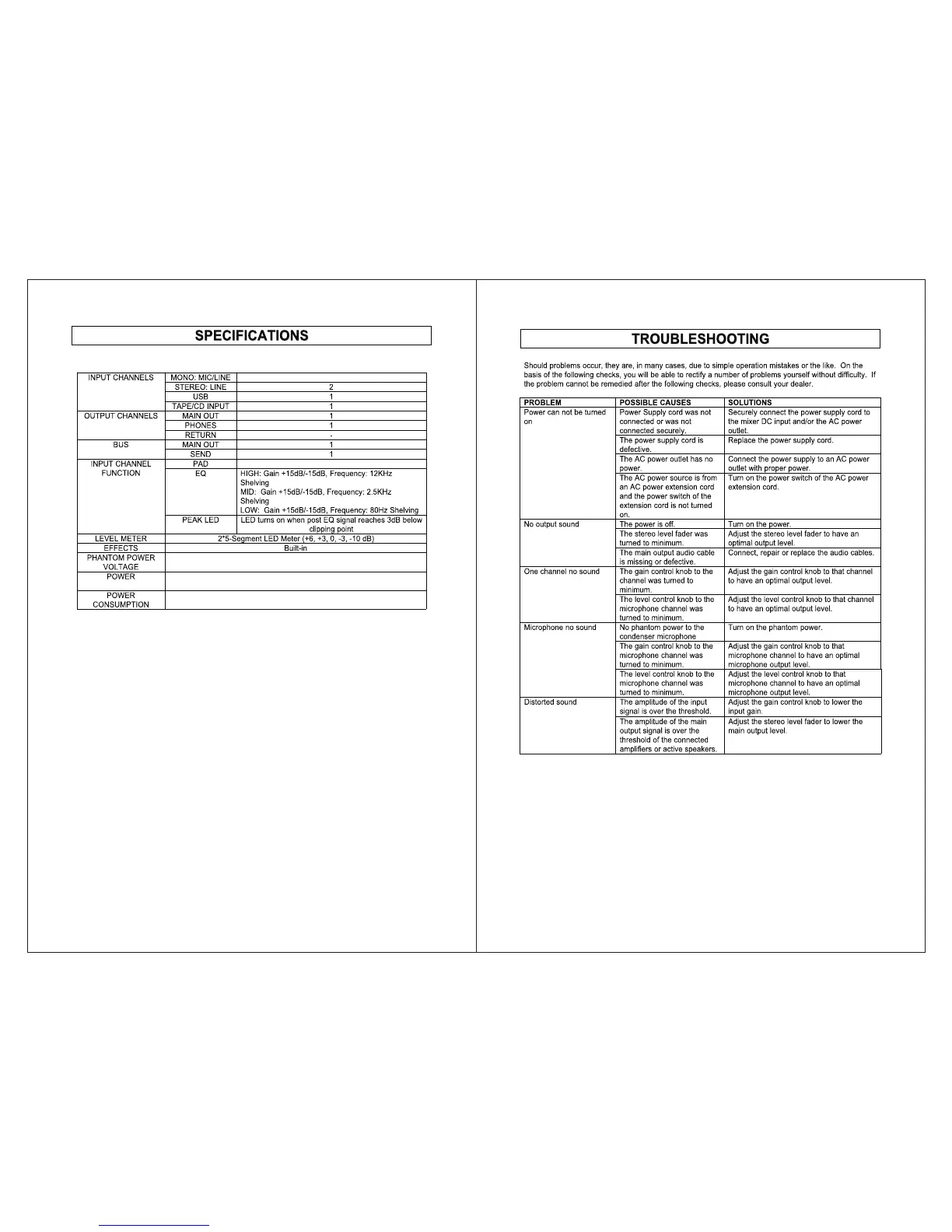 Audio2000's AMX7313 - Specifications; Input and Output Channels; Input Channel Functions; Level Meter and Effects
