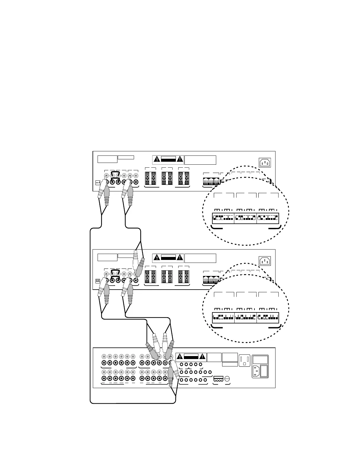 The Zone Output of Zone 5 is connected to Audio Input 3 of the first PX-603, and is looped to