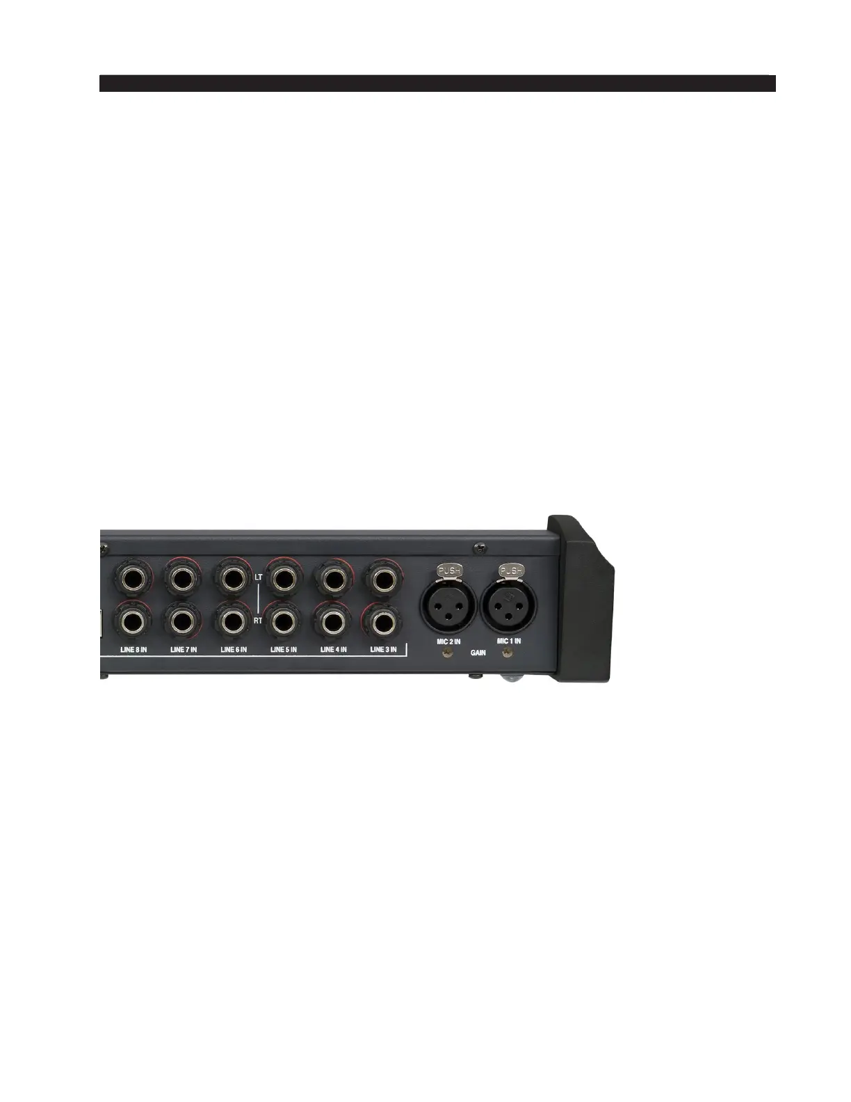 The rear of the console has multiple TRS connectors to plug in 6 stereo line inputs