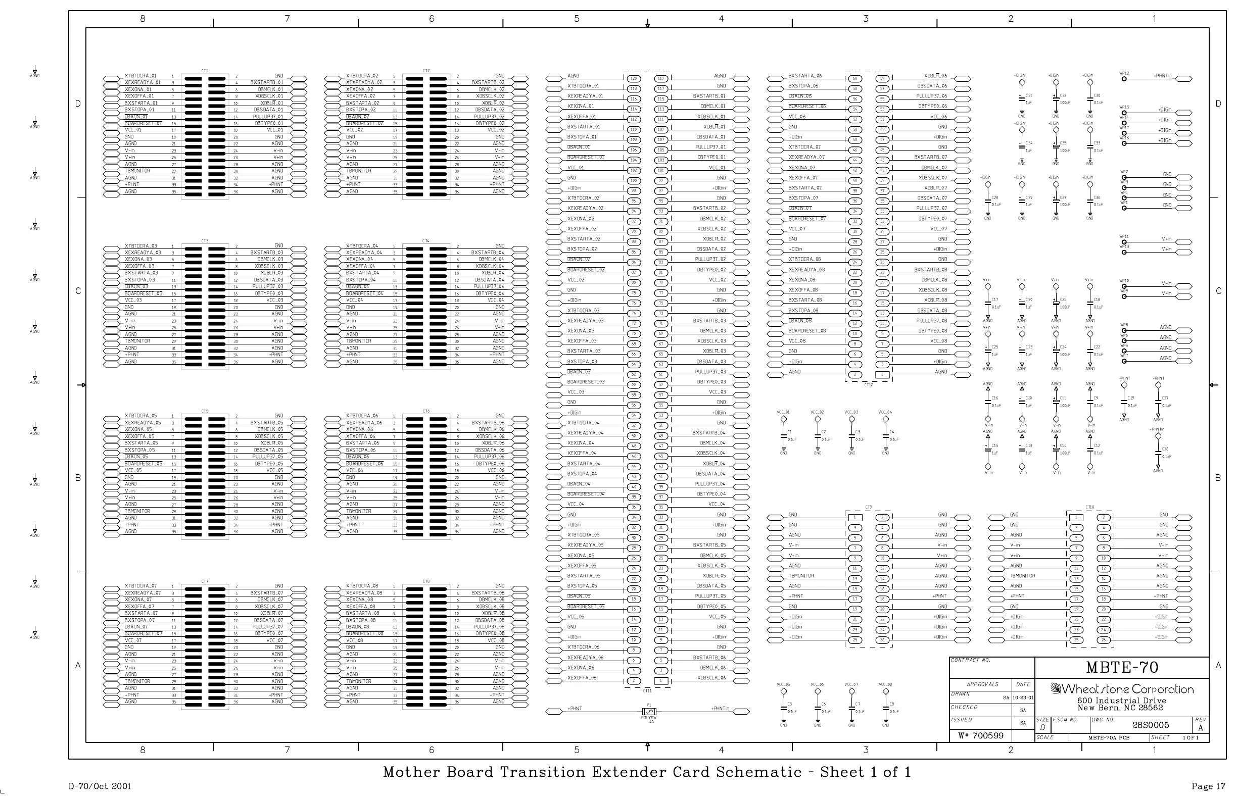 Mother Board Transition Extender Card Schematic - Sheet 1 of 1
