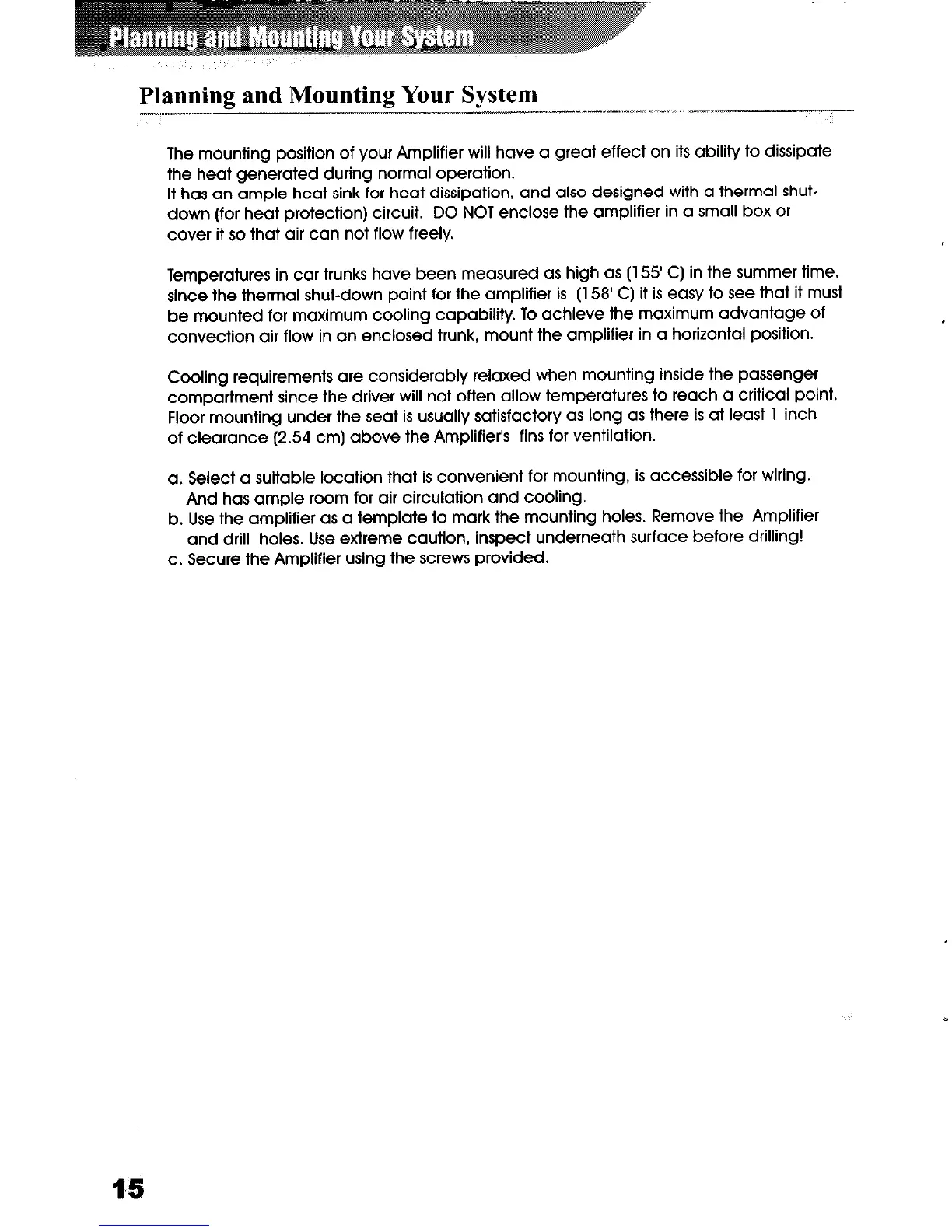 convection air flow in an enclosed trunk, mount the amplifier in a horizontal position.