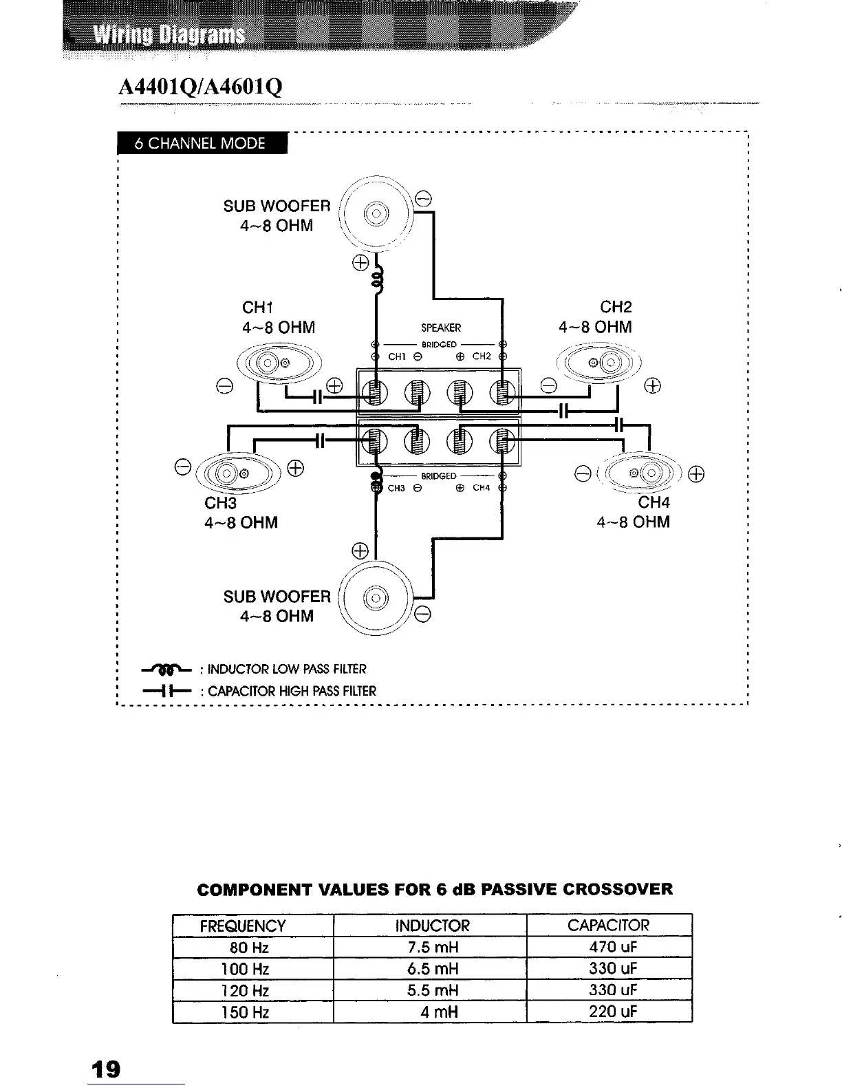 COMPONENT VALUES FOR 6 dB PASSIVE CROSSOVER