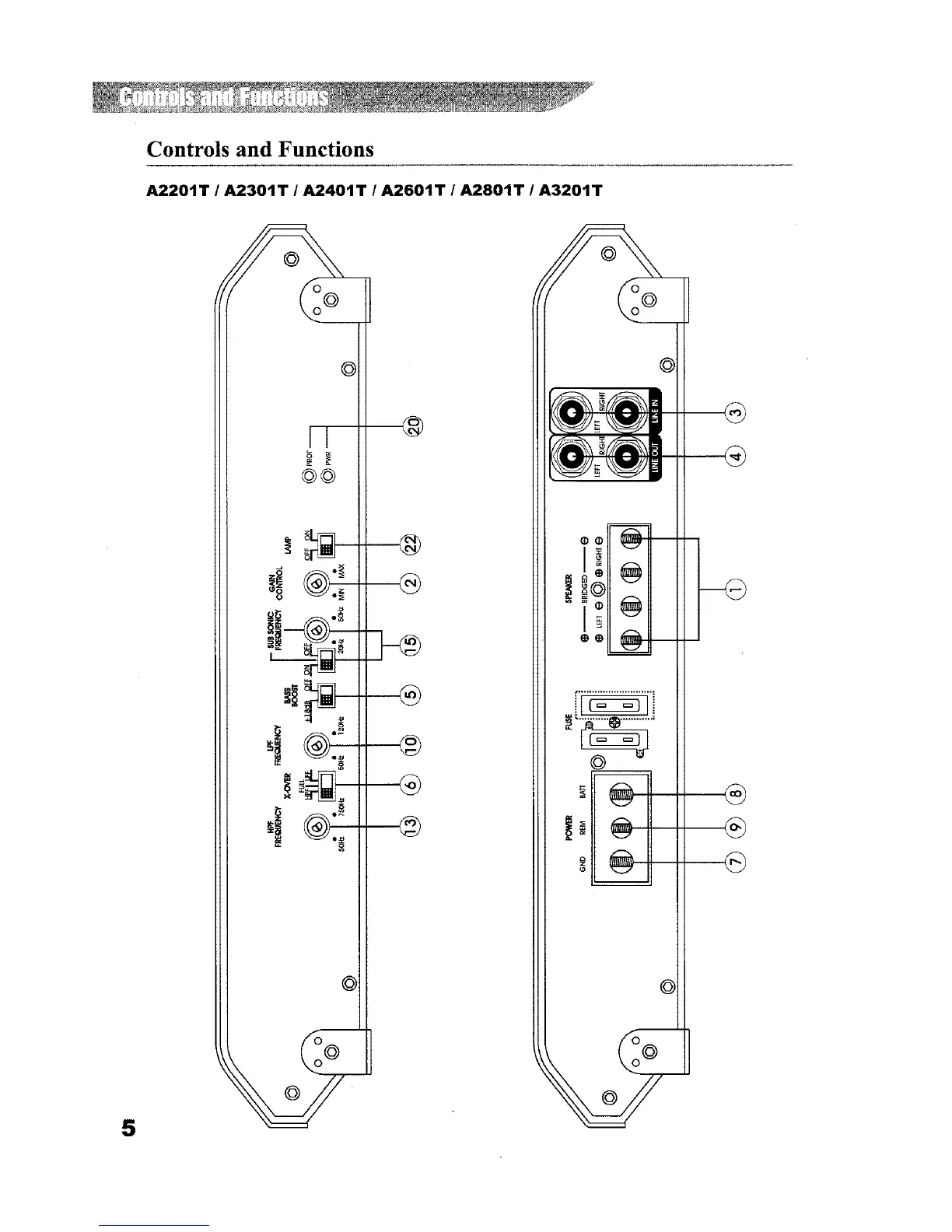 AudioBahn A2801T - Controls and Functions; A2201 T-A3201 T Controls