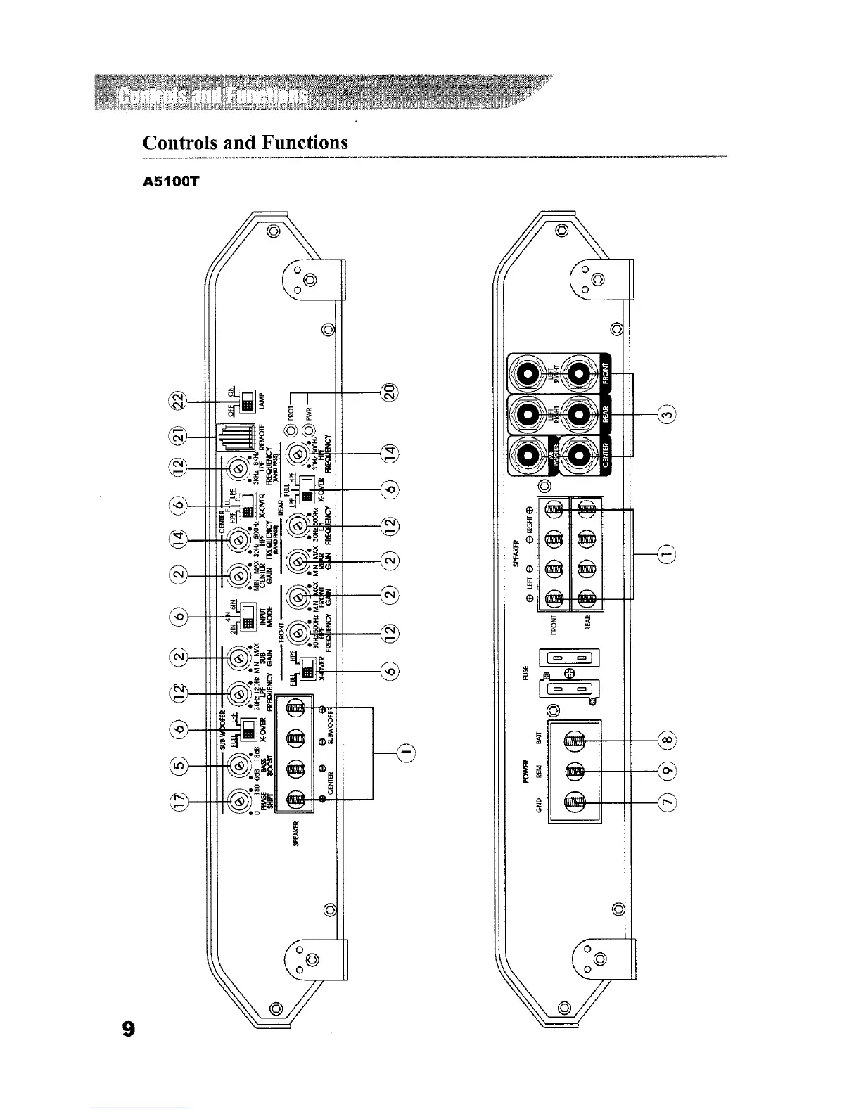 AudioBahn A5100T - Controls and Functions: A5100 T Amplifier; A5100 T Controls and Functions