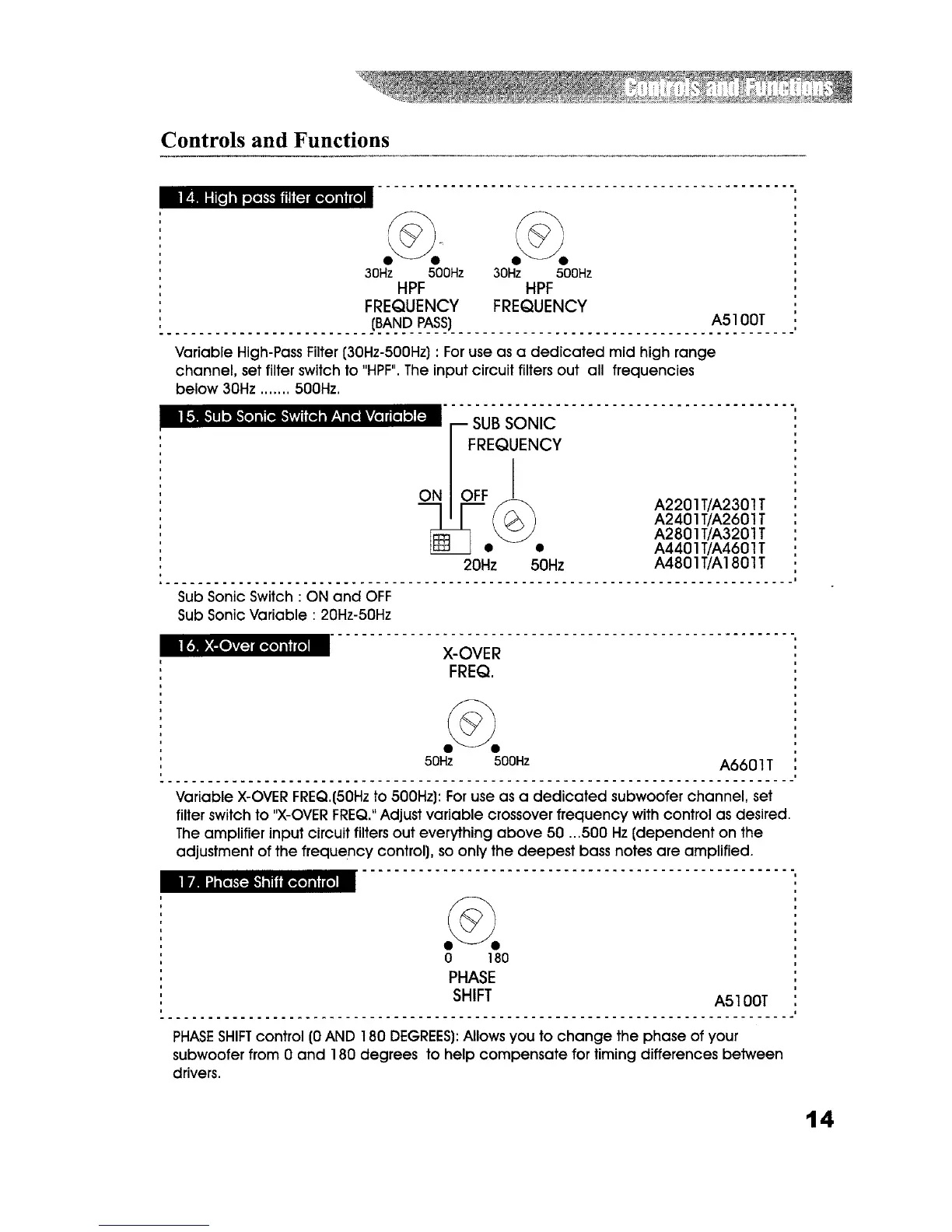 AudioBahn A5100T - Advanced Filtering and Phase Controls; A5100 T High Pass Filter; Sub Sonic Filter Operation; A6601 T Crossover Control