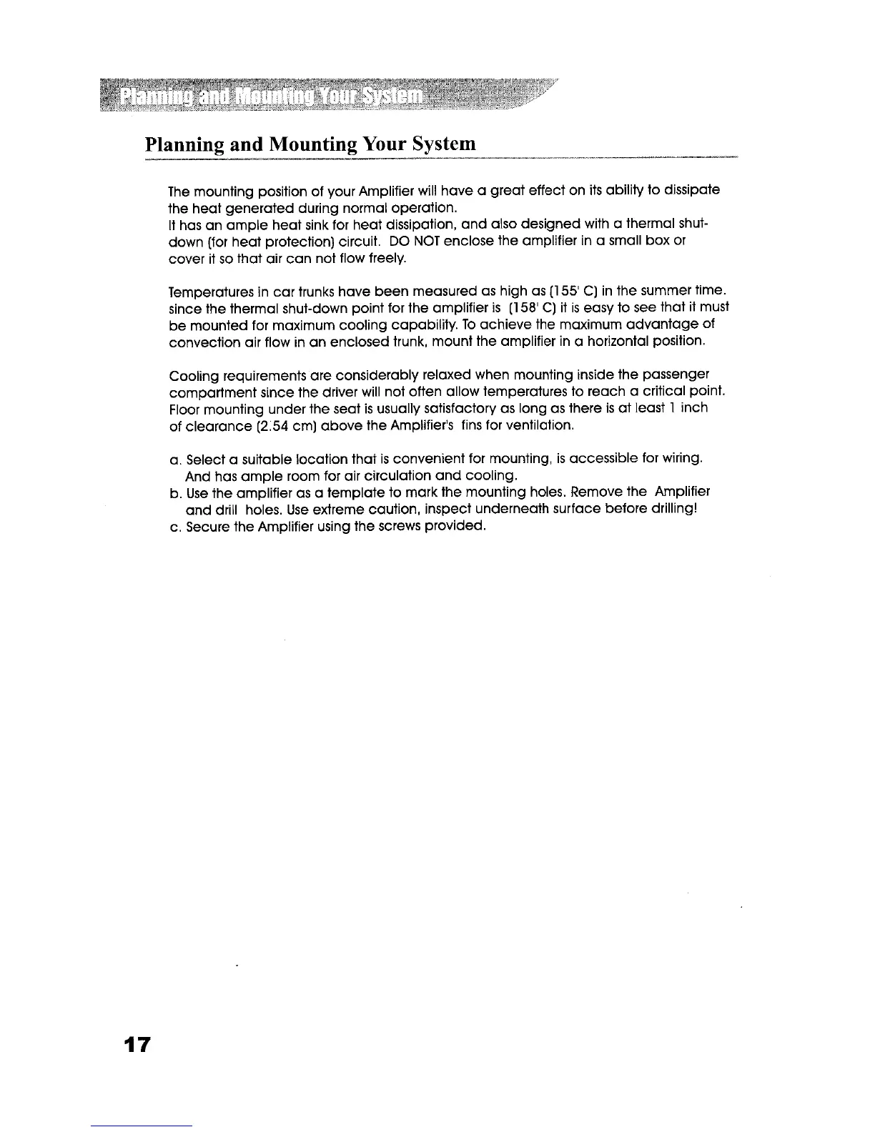 AudioBahn A5100T - Planning and Mounting Your System; Amplifier Mounting Guidelines