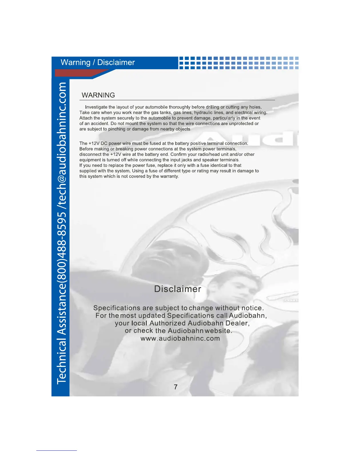 AudioBahn ABP102N - Warning and Disclaimer