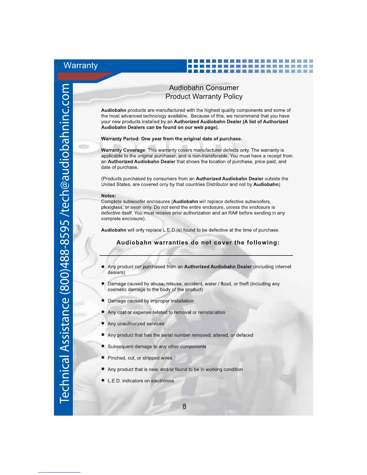 AudioBahn ABP102N - Audiobahn Product Warranty; Warranty Coverage and Period; Enclosure Return Policy Notes; Warranty Exclusions