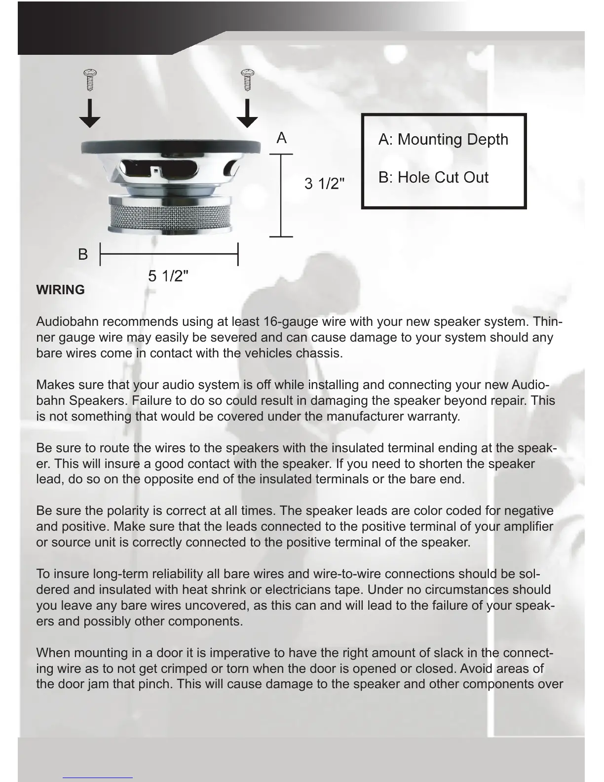 Audiobahn recommends using at least 16-gauge wire with your new speaker system. Thin-