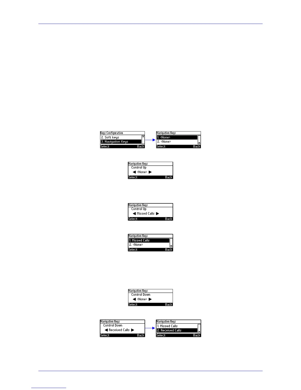 2. Press the Select softkey; the navigation key's Control Up position is displayed.