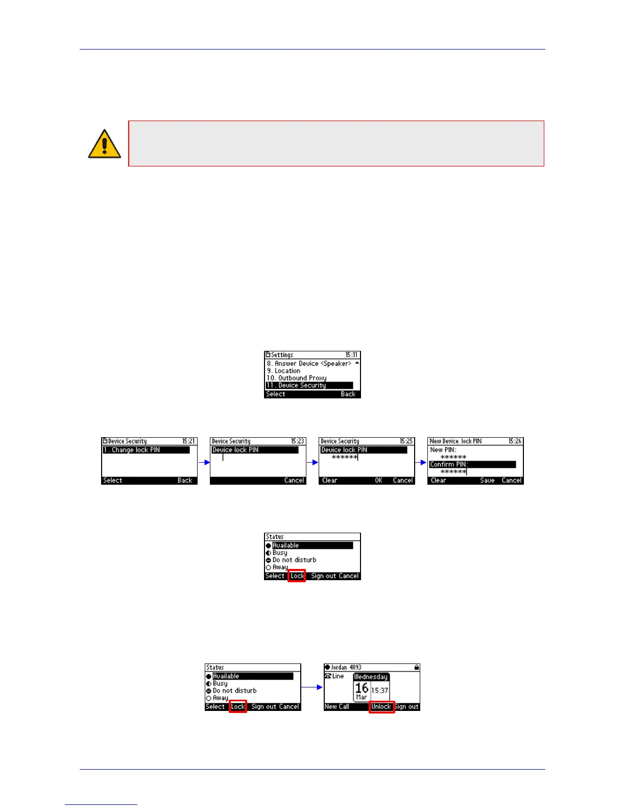 1. Press the MENU key, select Settings and then scroll down to select Device Security.