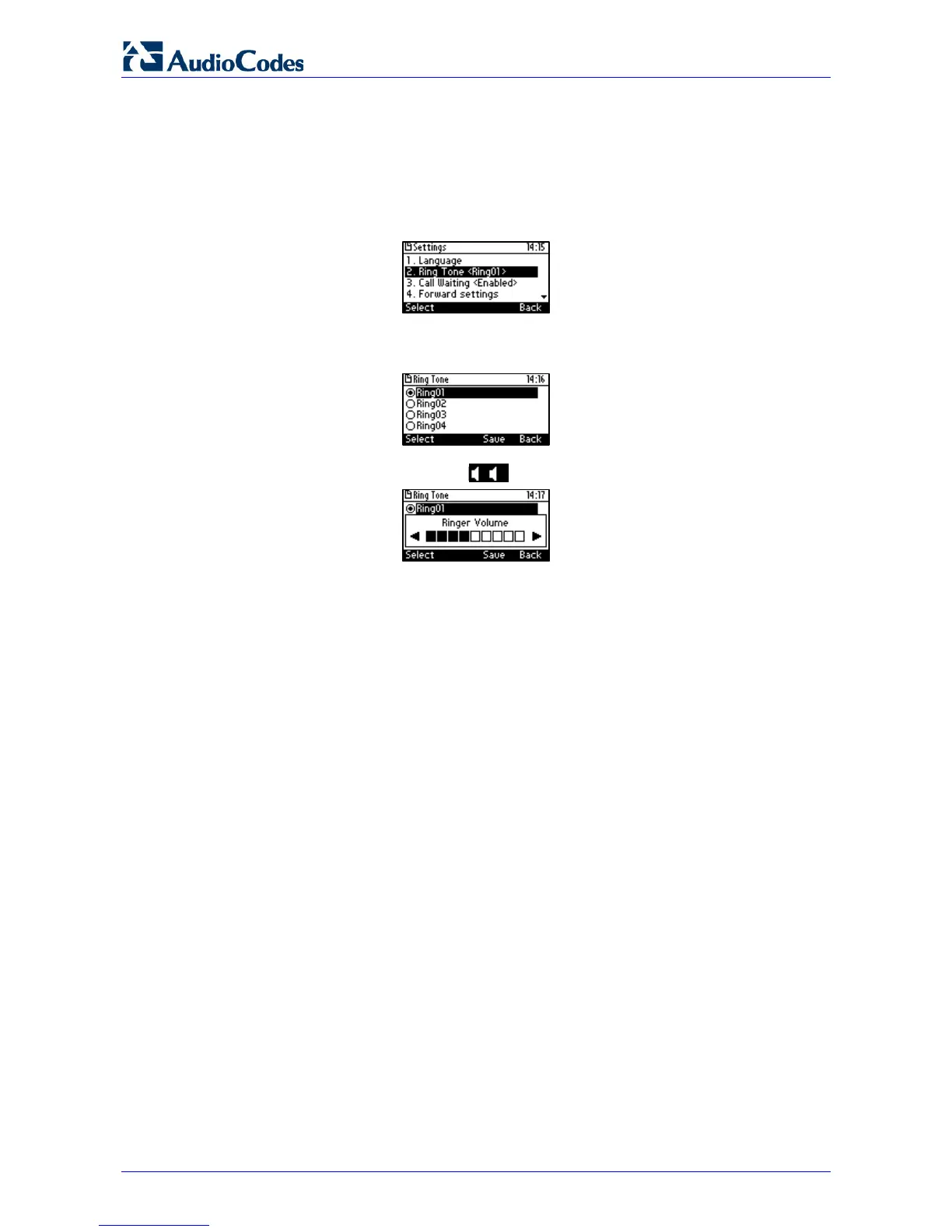 2. Navigate to and select a ring tone. A sample of each is played as you navigate through the