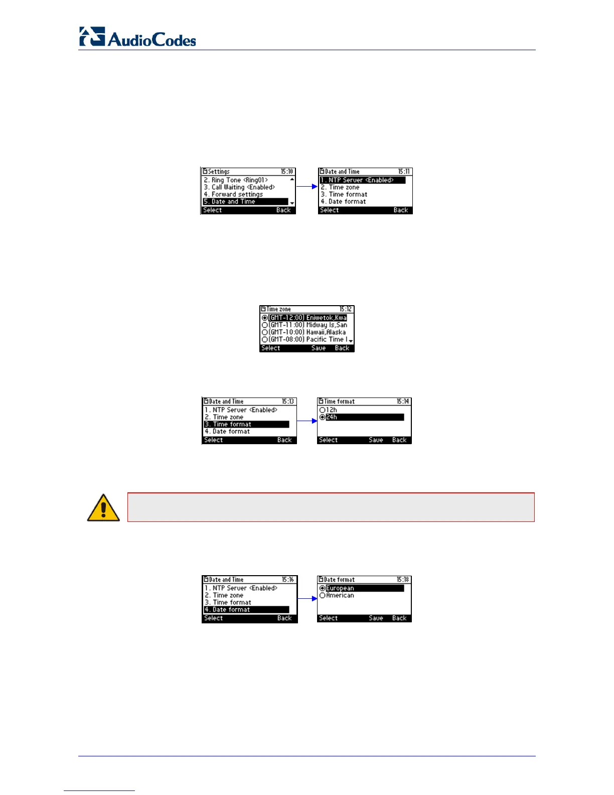 1. Access the Date and Time screen (MENU key > Settings > Date and Time).