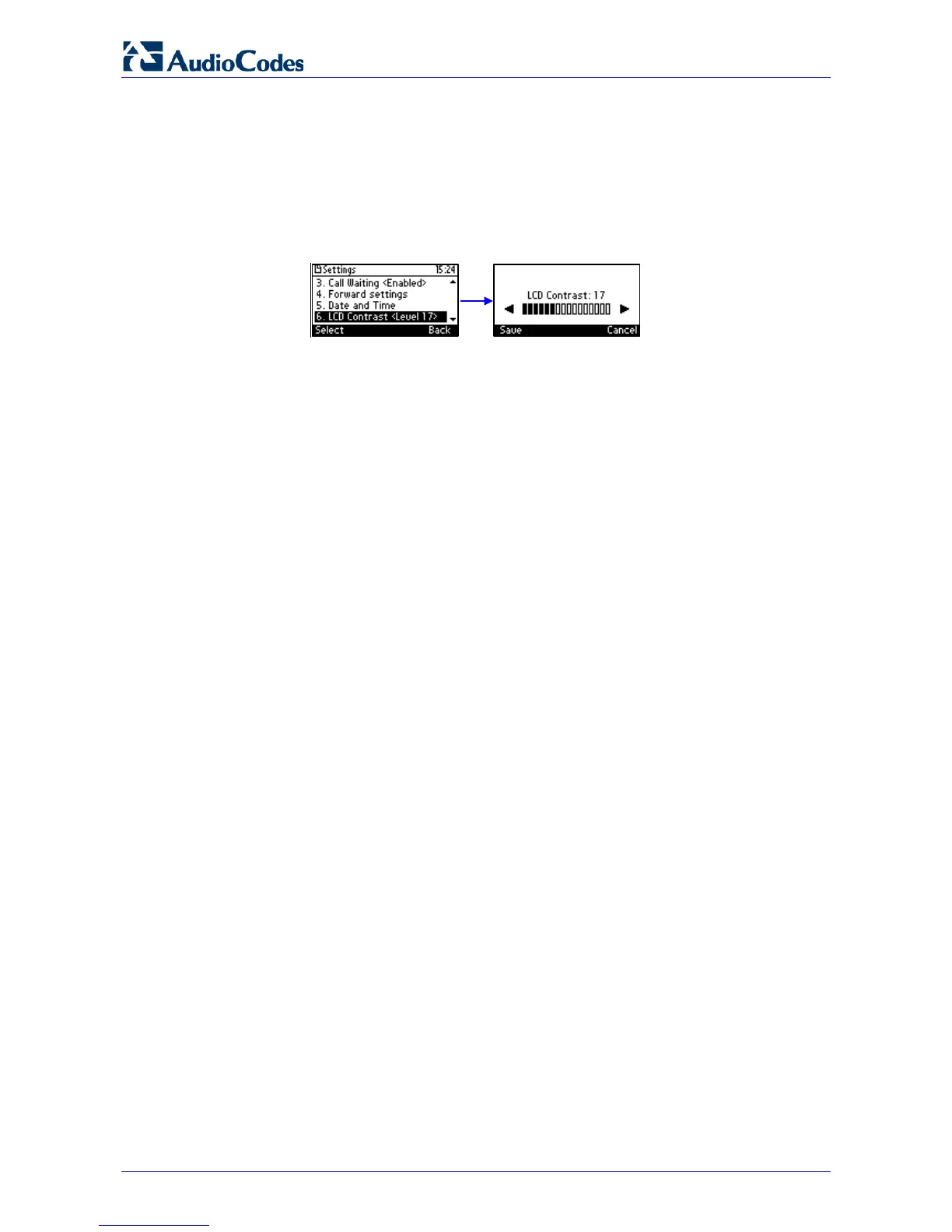 1. Access the LCD Contrast menu (MENU key > Settings > LCD Contrast).