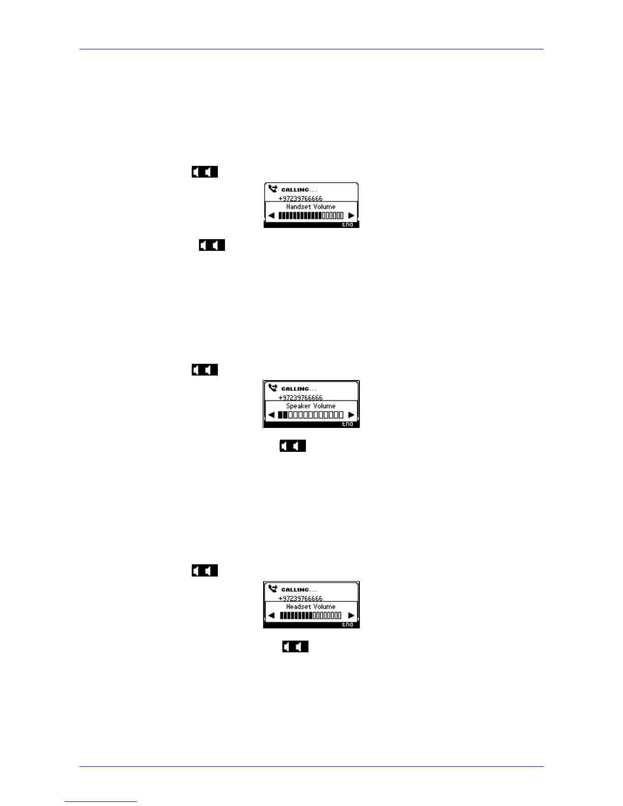 2. Press the - + hard key; the Headset Volume bar is displayed in the screen.