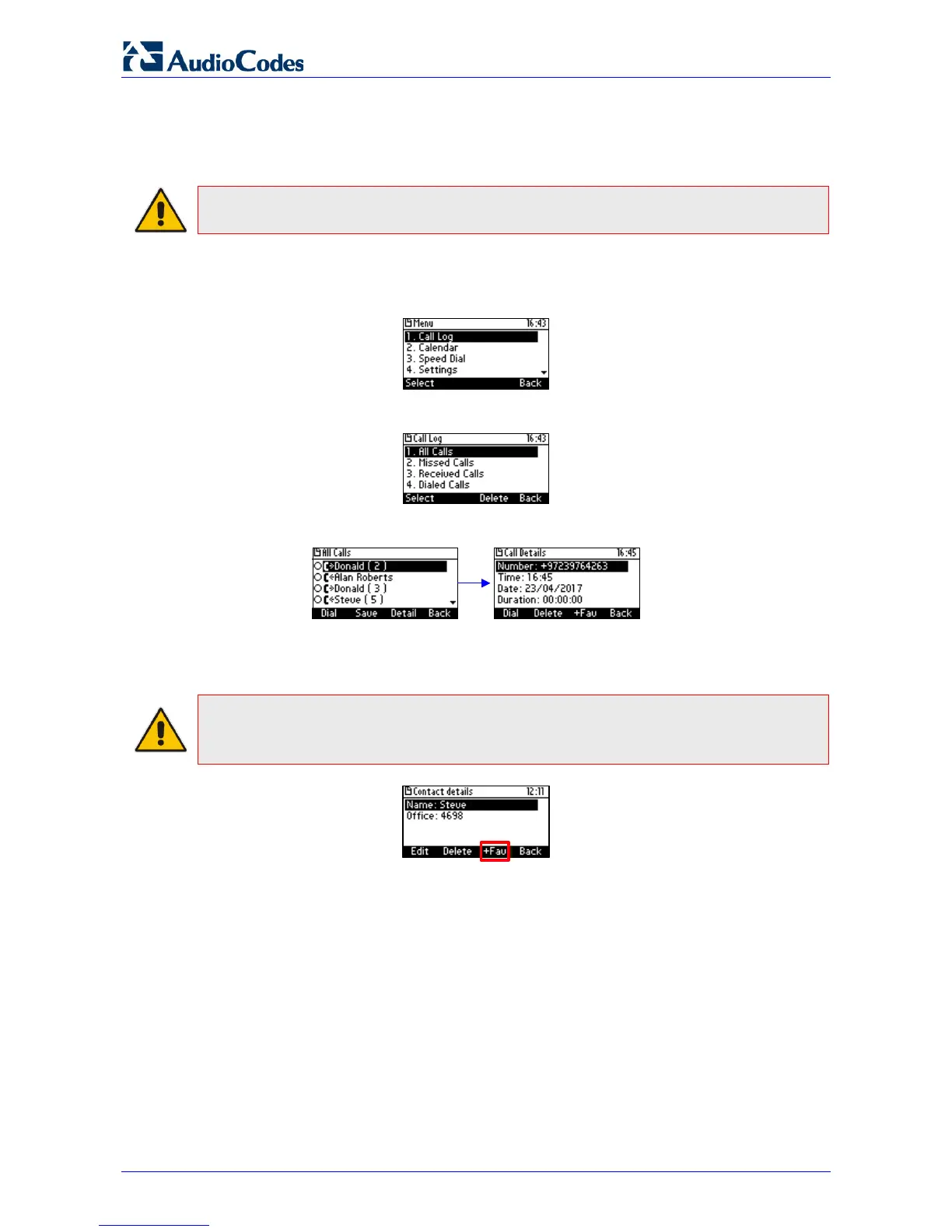 This section shows how to add a person to the Favorites directory after a call with them is logged.