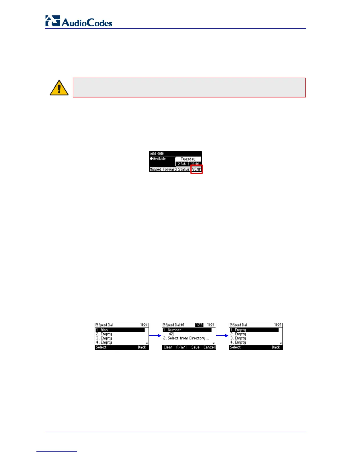 4. Press the Save softkey; the Speed Dial is listed as 'Empty':