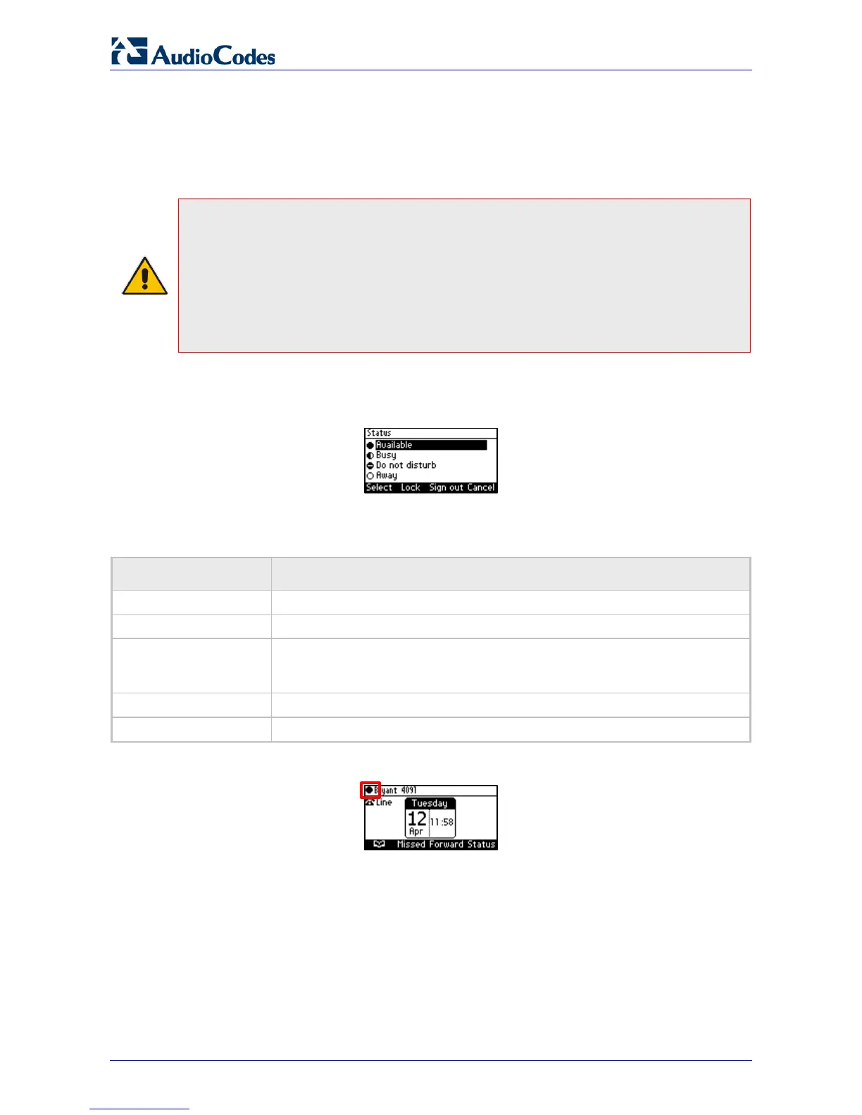 administrator), presence status automatically changes to ‘Away’; all calls are then