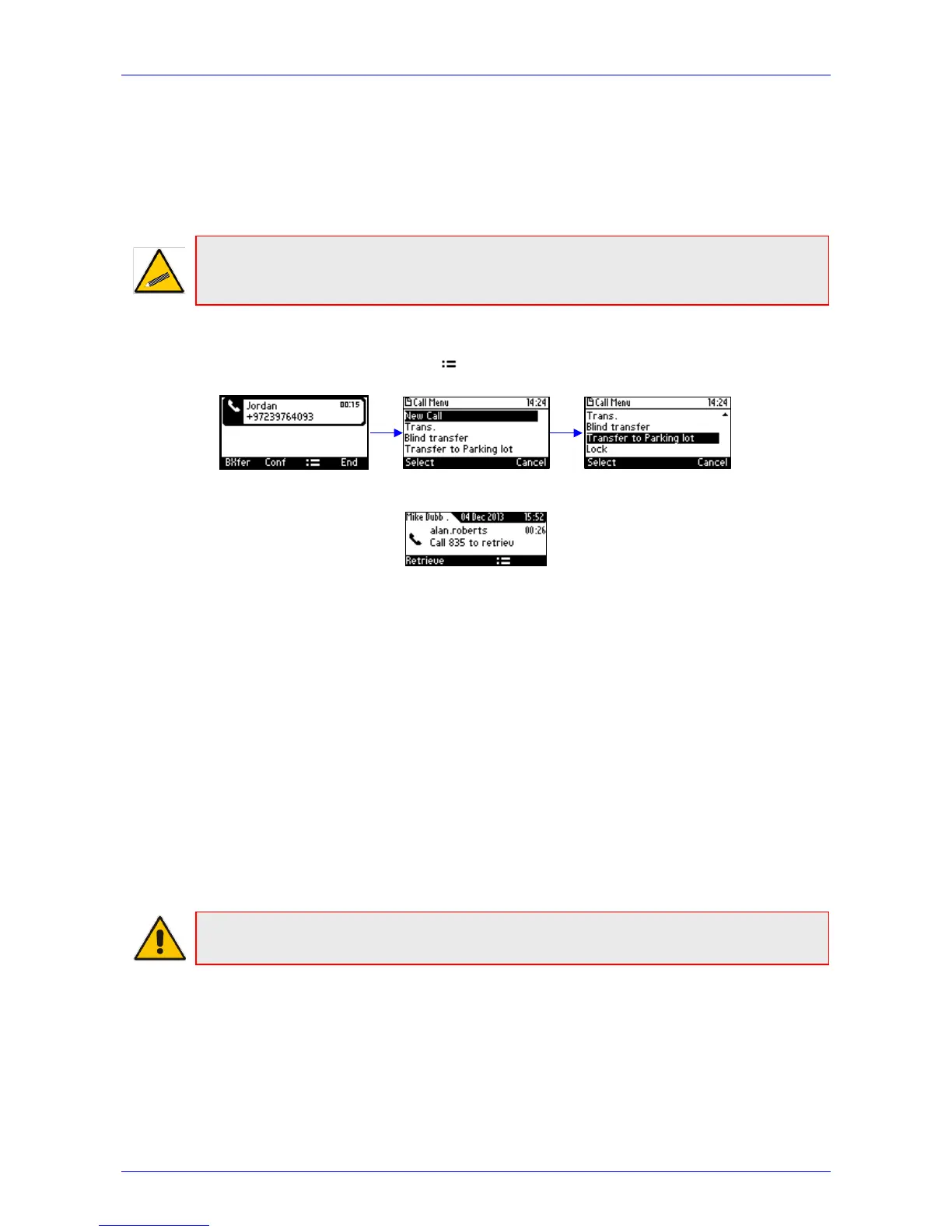 The screen notifies you of the retrieval number to dial to retrieve the call on another phone: