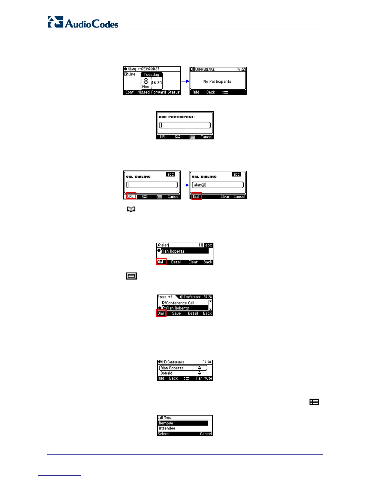participant's URL (see Section 4.4 for more information), and press the Dial softkey.