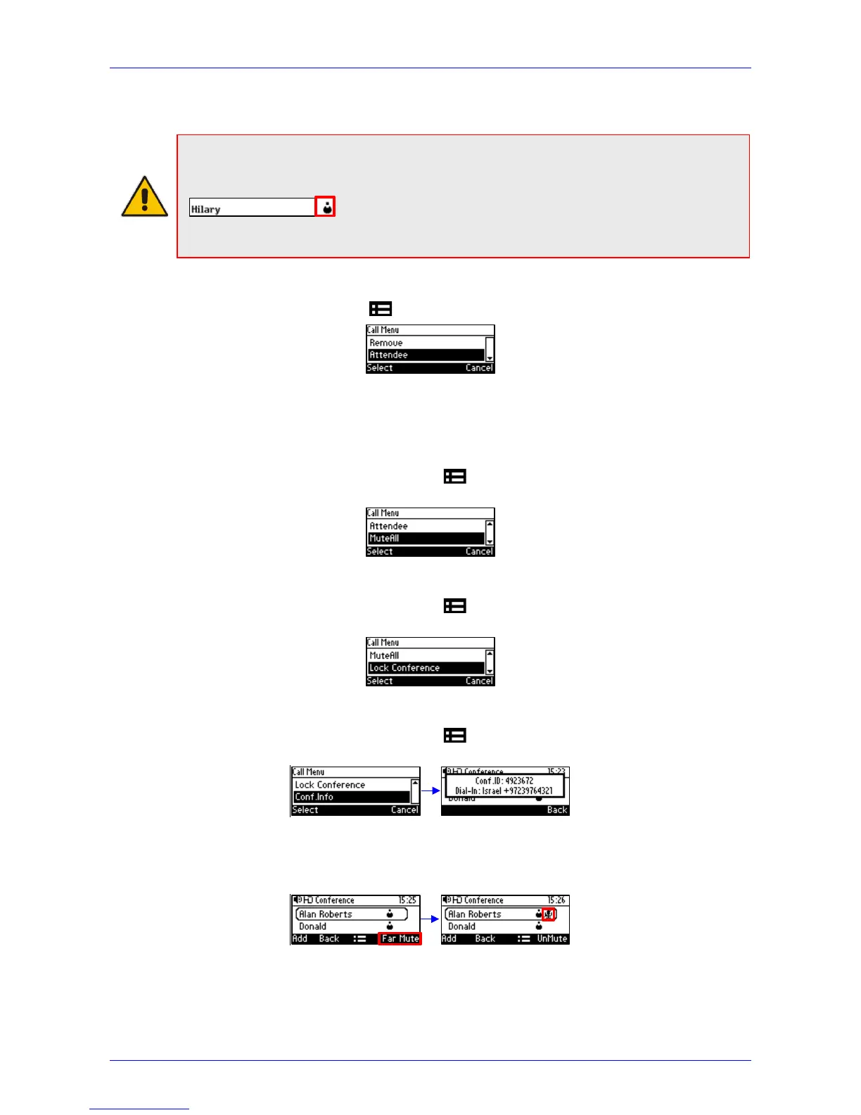 In the CONFERENCE screen, press the softkey and in the Call Menu screen that
