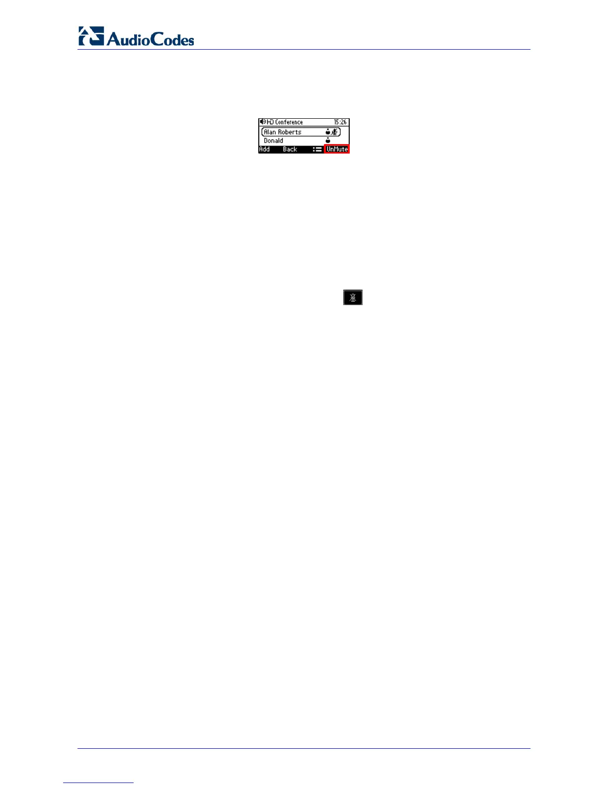 In the CONFERENCE screen, navigate to the participant to unmute and then press the