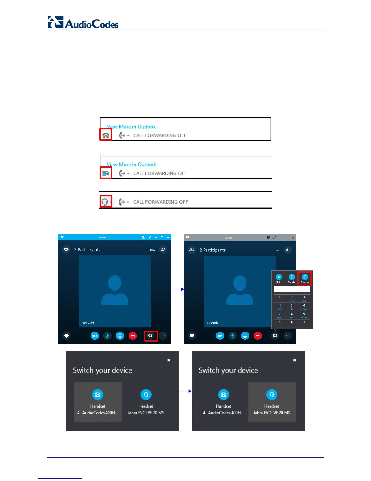 Business conversation through the phone handset, for example, to listening on a headset, or from