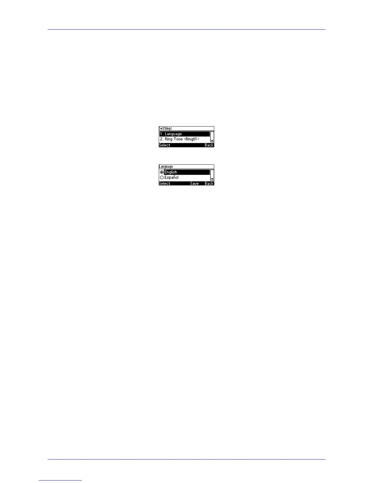1. Access the Languages screen (MENU key > Settings > Language).