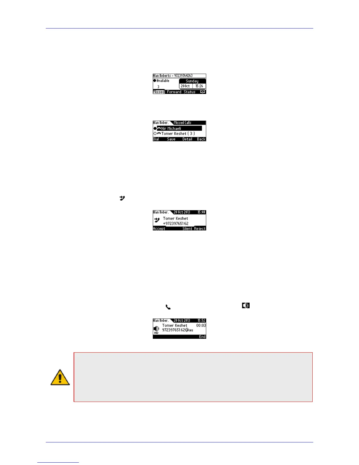 1. Press the Missed softkey; the Missed Calls screen is displayed: