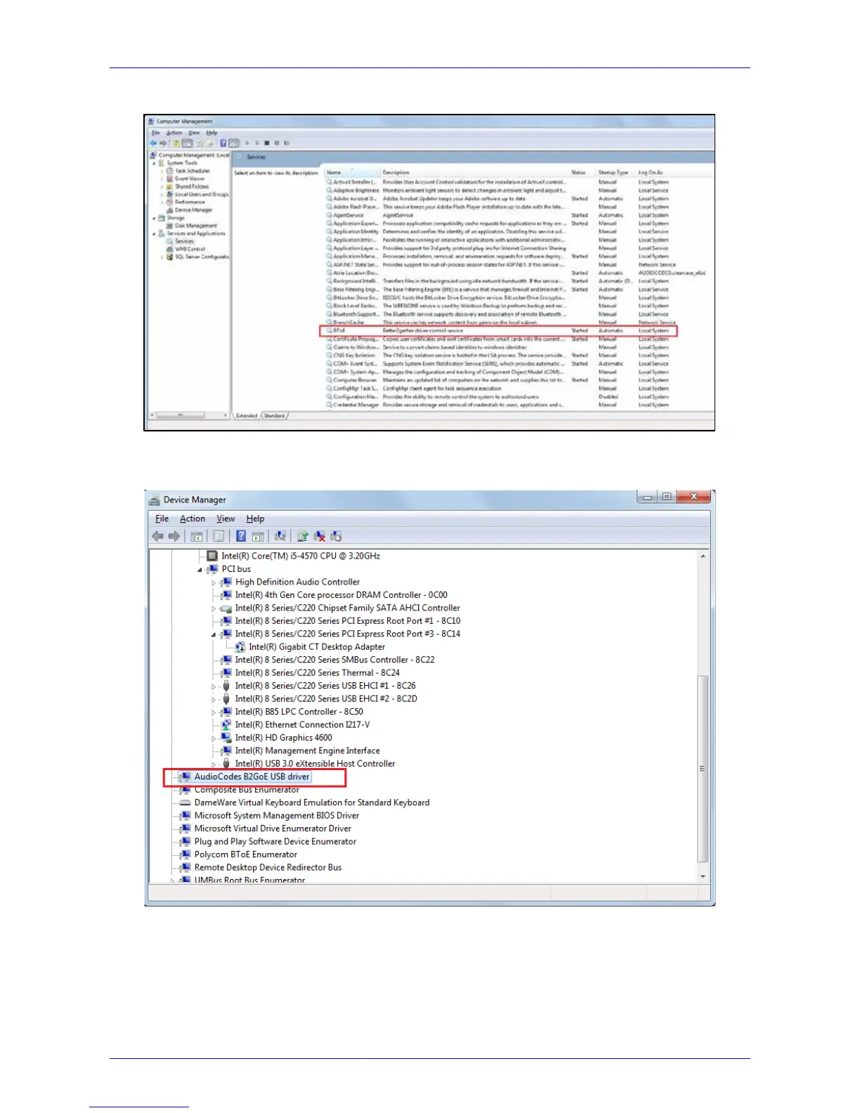 Figure 7-13: Device Manager > AudioCodes B2GoE USB Driver
