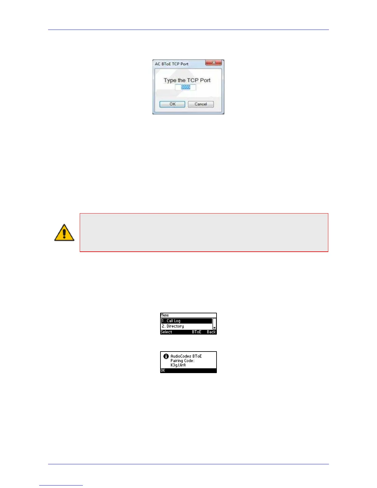 This section shows how to pair AudioCodes' BToE PC application with the IP phone using a pair