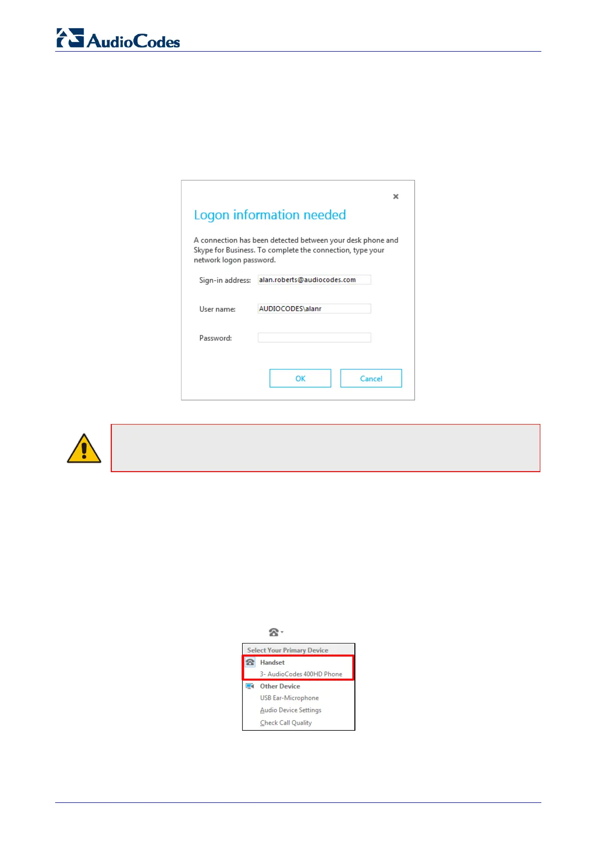 2. Make sure Handset AudioCodes 400HD Phone is selected.