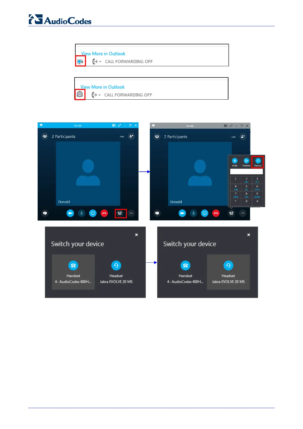 In a Skype for Business call, click the Call Control icon and select Devices.