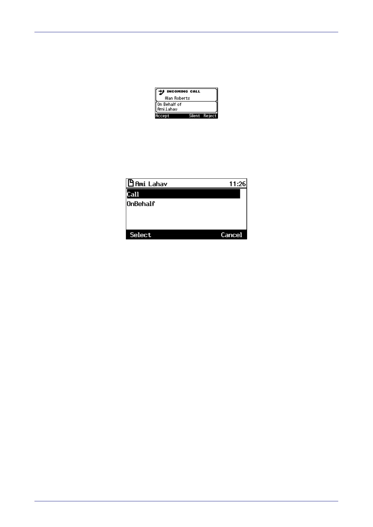 OnBehalf = select to call another recipient on behalf of Boss