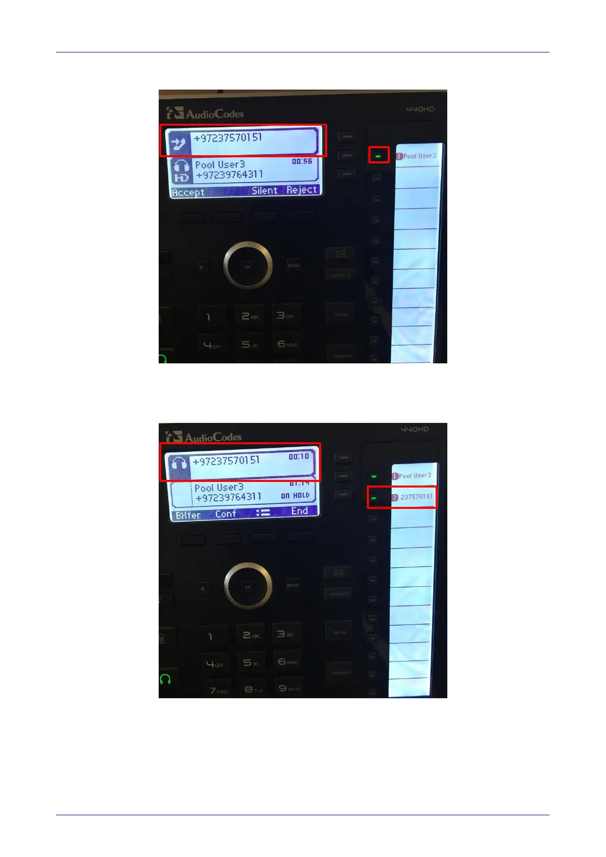 Phone A: The figure above shows an answered new incoming call. It appears in the sidecar BLF