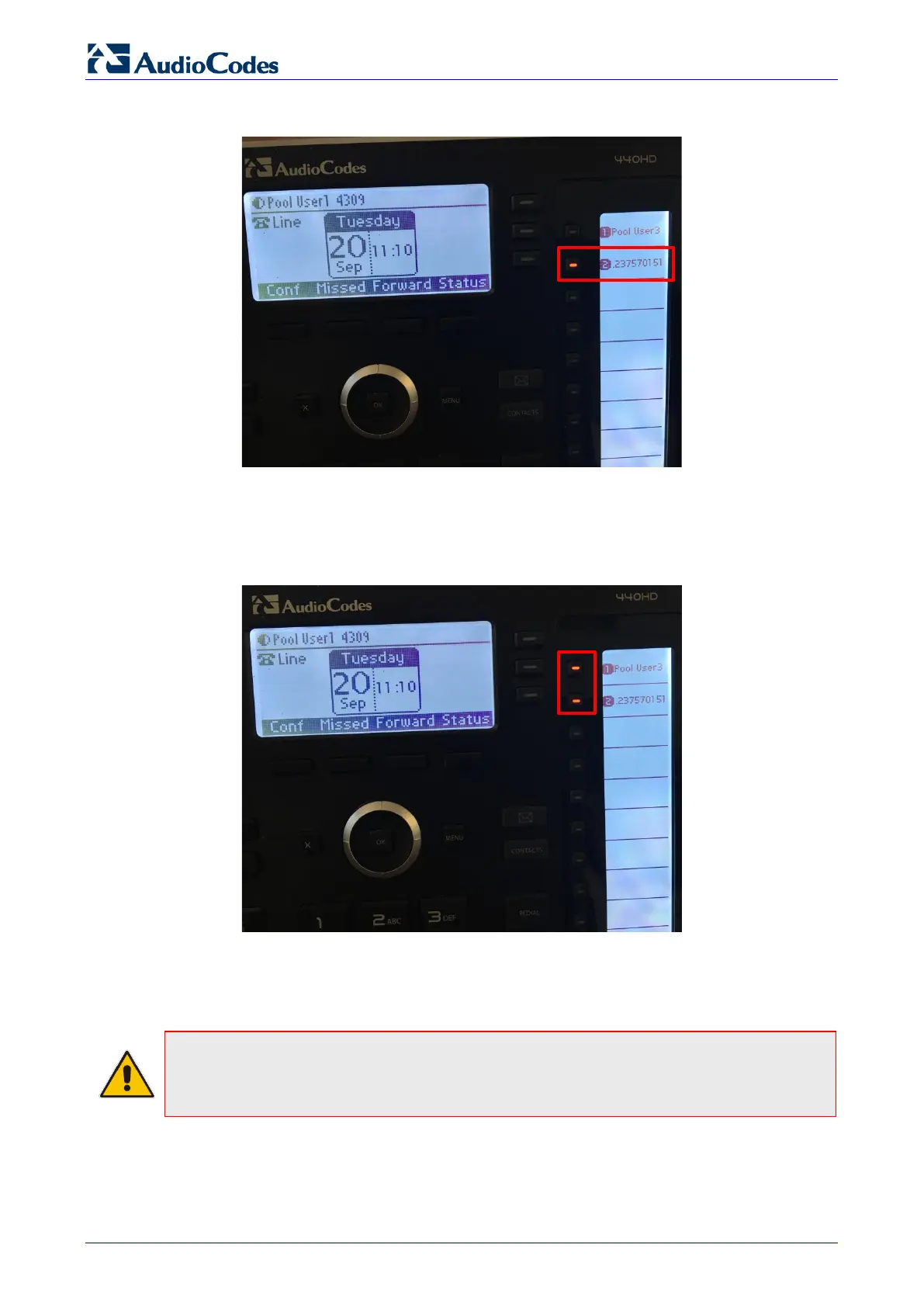 Flashing red BLF key = incoming call answered on Phone A and put on hold on Phone A