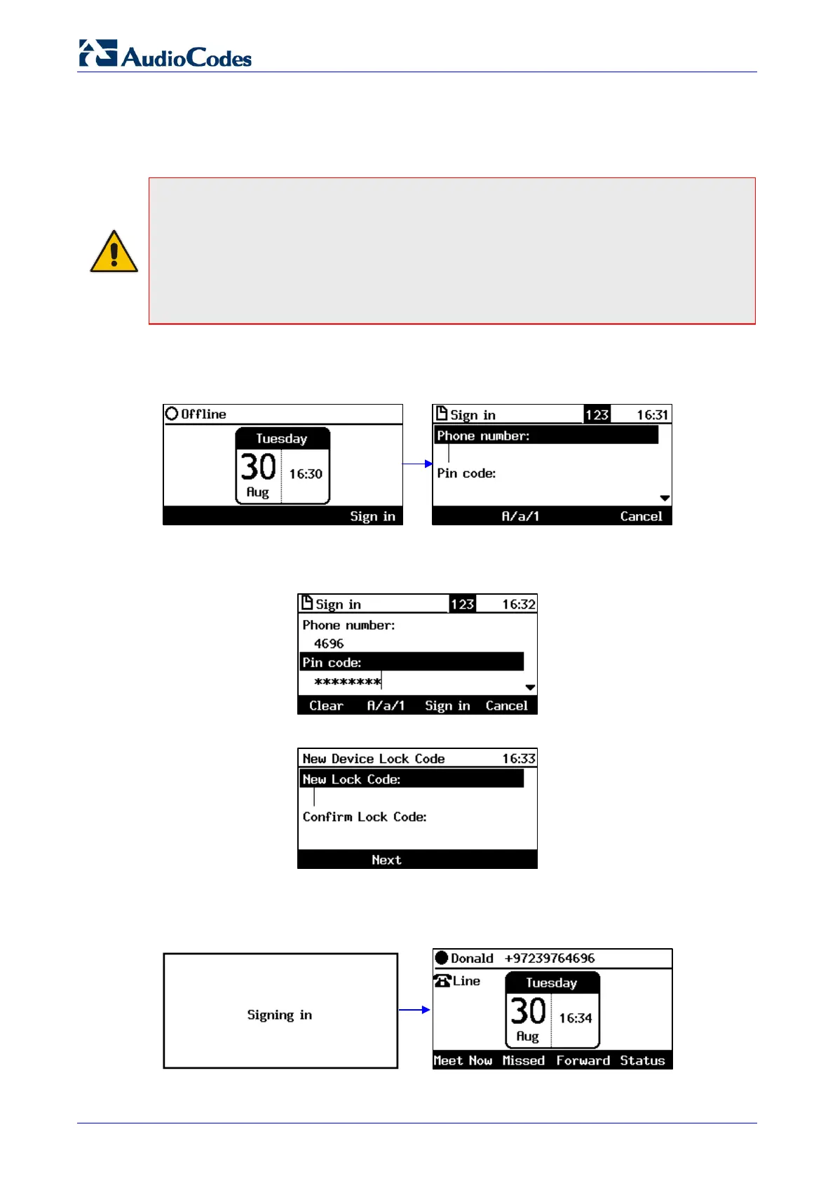 • The default sign-in method, presented in the phone's LCD, is with the phone number and