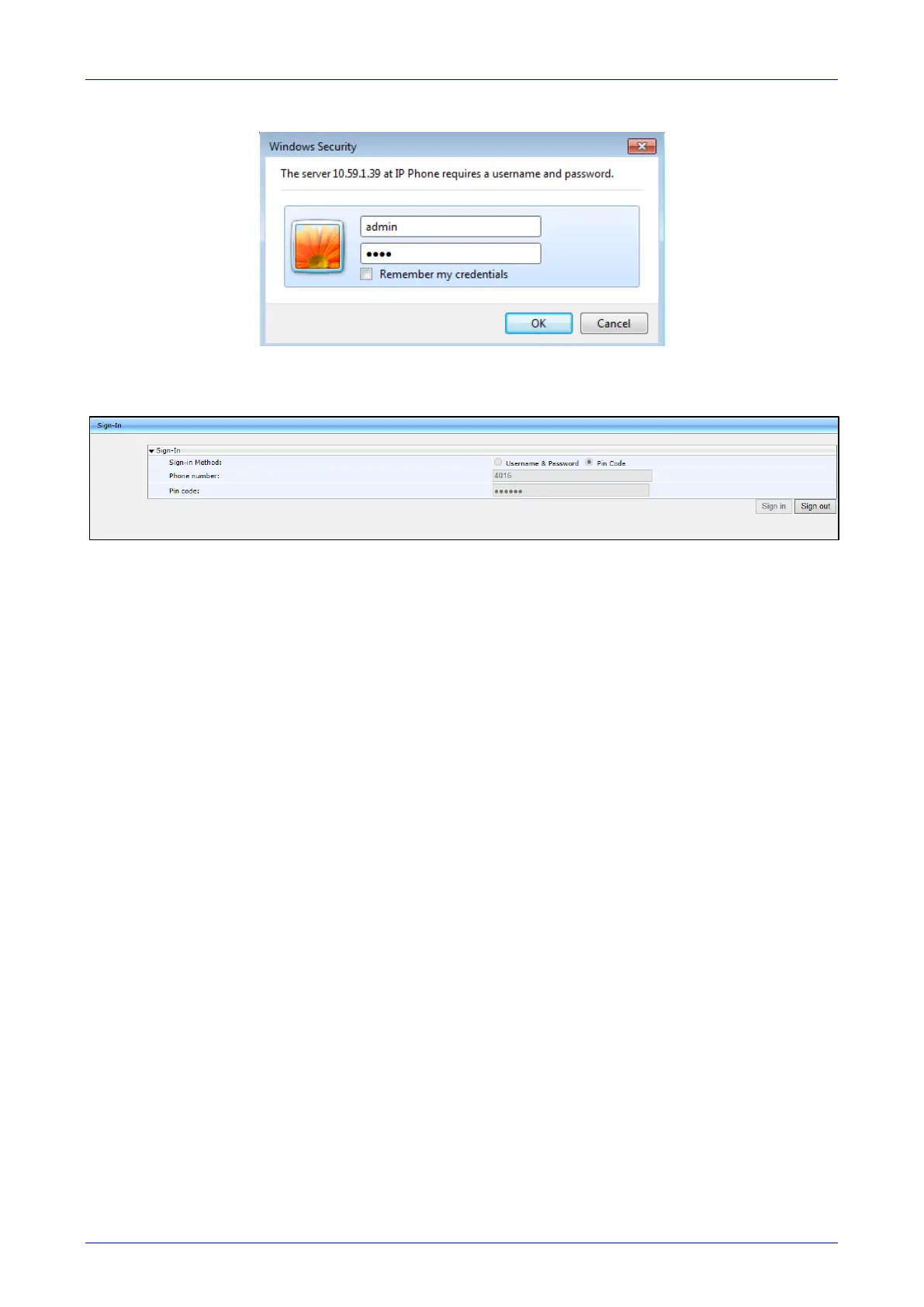 AudioCodes 430HD - Figure 3-10: Windows Security Prompt; Figure 3-11: Sign-Out