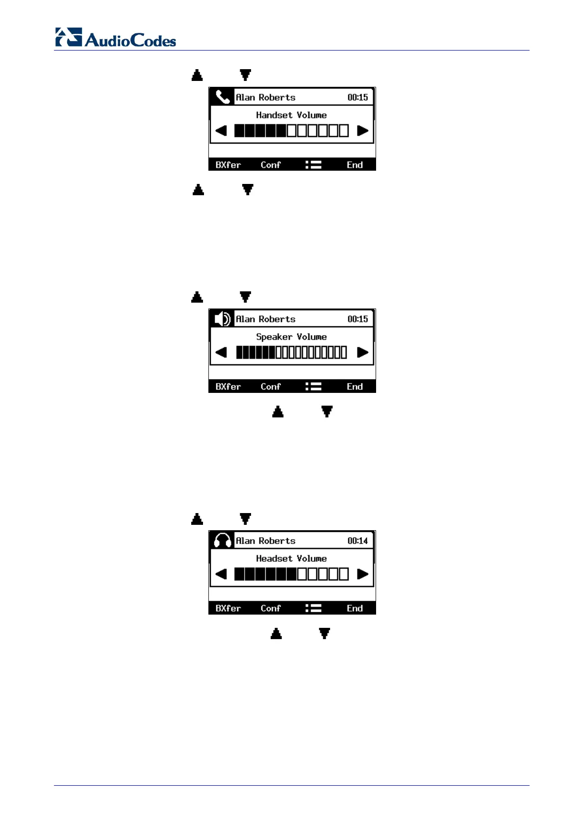 2. Press the VOL or VOL key; the Headset Volume bar is displayed on the screen.